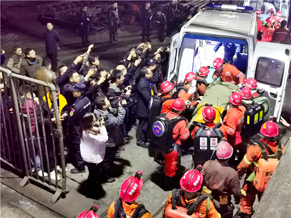 12月18日5:55,在杉木樹煤礦南平硐井口, 第一批2名被困礦工在救援人員的合力下相繼抬出。此時,距離事故發生已經過去五天四夜,近87個小時,眼看着被困人員升井,現場所有救援和等待的人員禁不住歡呼,為這一堅持下的生命奇蹟鼓掌。隨後,剩下的被困人員陸續被救出,直至18日早上7:58,所有人員全部成功升井,且生命體征較為平穩。
