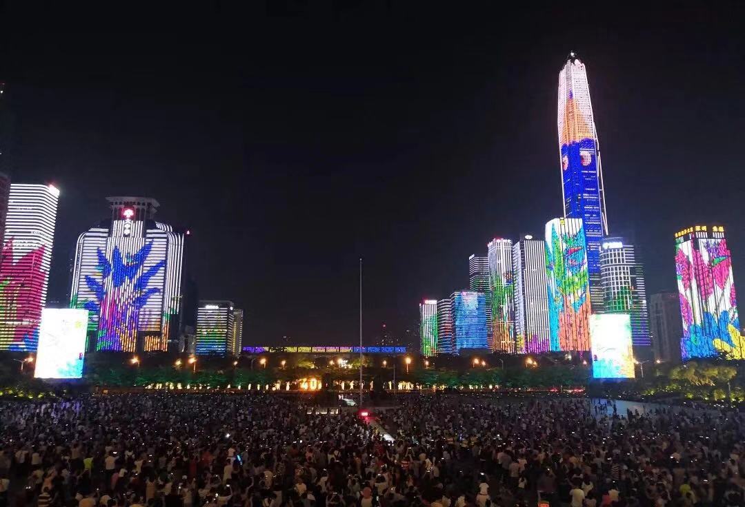 本次燈光表演以計算機算法生成影像的方式,通過AI算法結合全新的視覺藝術的表達,體現深圳的城市包容性和創新引領性。