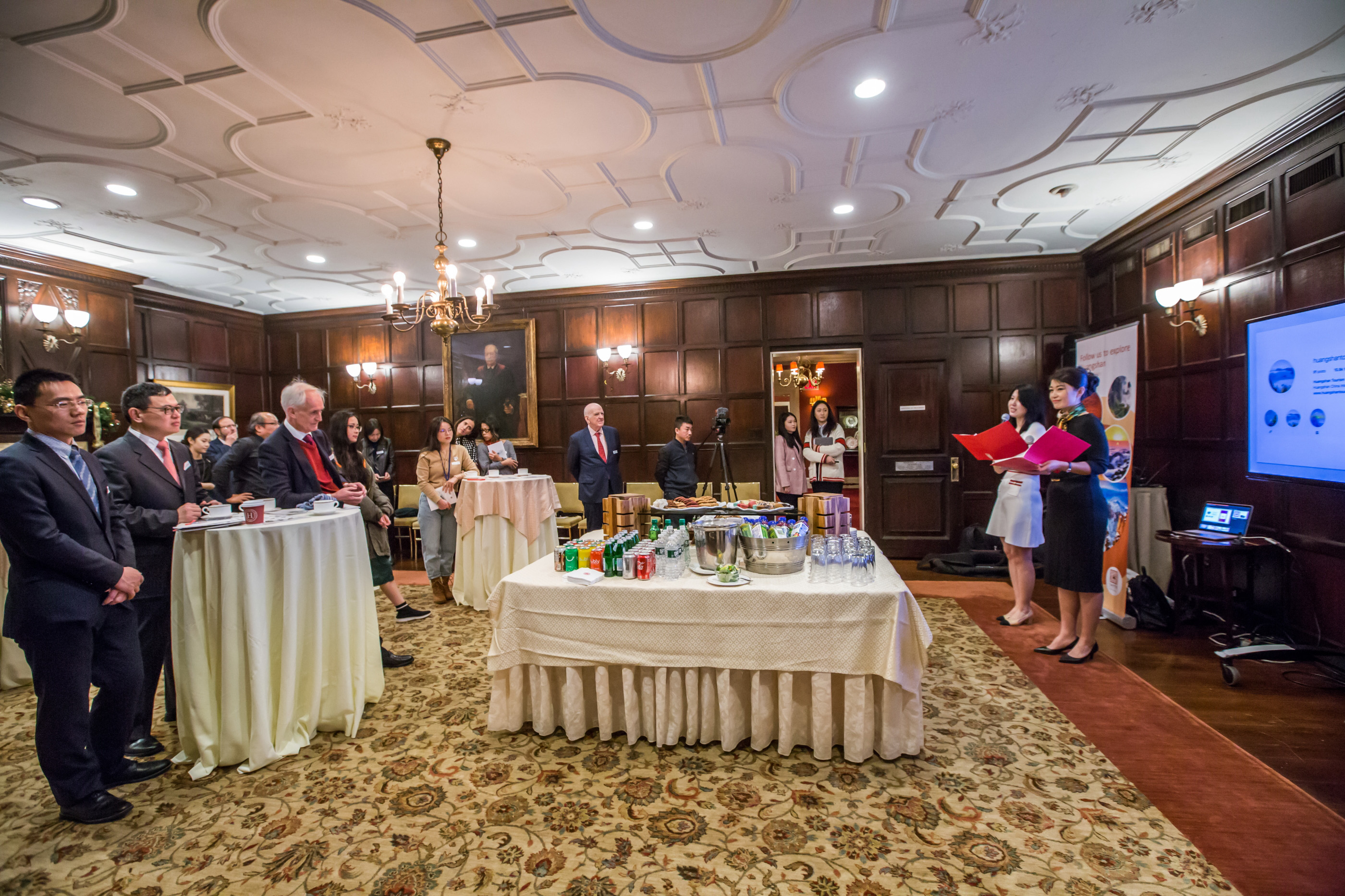 【香港商報網訊】紐約當地時間12月16日,由黃山旅遊發展股份有限公司主辦、新華網北美傳播運營中心承辦的中國黃山推介會暨圖片展,在曼哈頓哈佛俱樂部舉行。來自紐約社會各界的嘉賓和部分聯合國官員受邀參加此次推介會和圖片展。現場黃山旅遊通過延時拍攝記錄的黃山全景視頻和近百幅以徽派文化和黃山旅遊為主題的圖片讓他們深受震撼,連連點贊。來賓們紛紛拿出手機拍下作品照片,通過社交網路與全世界分享來自黃山的壯麗景觀。