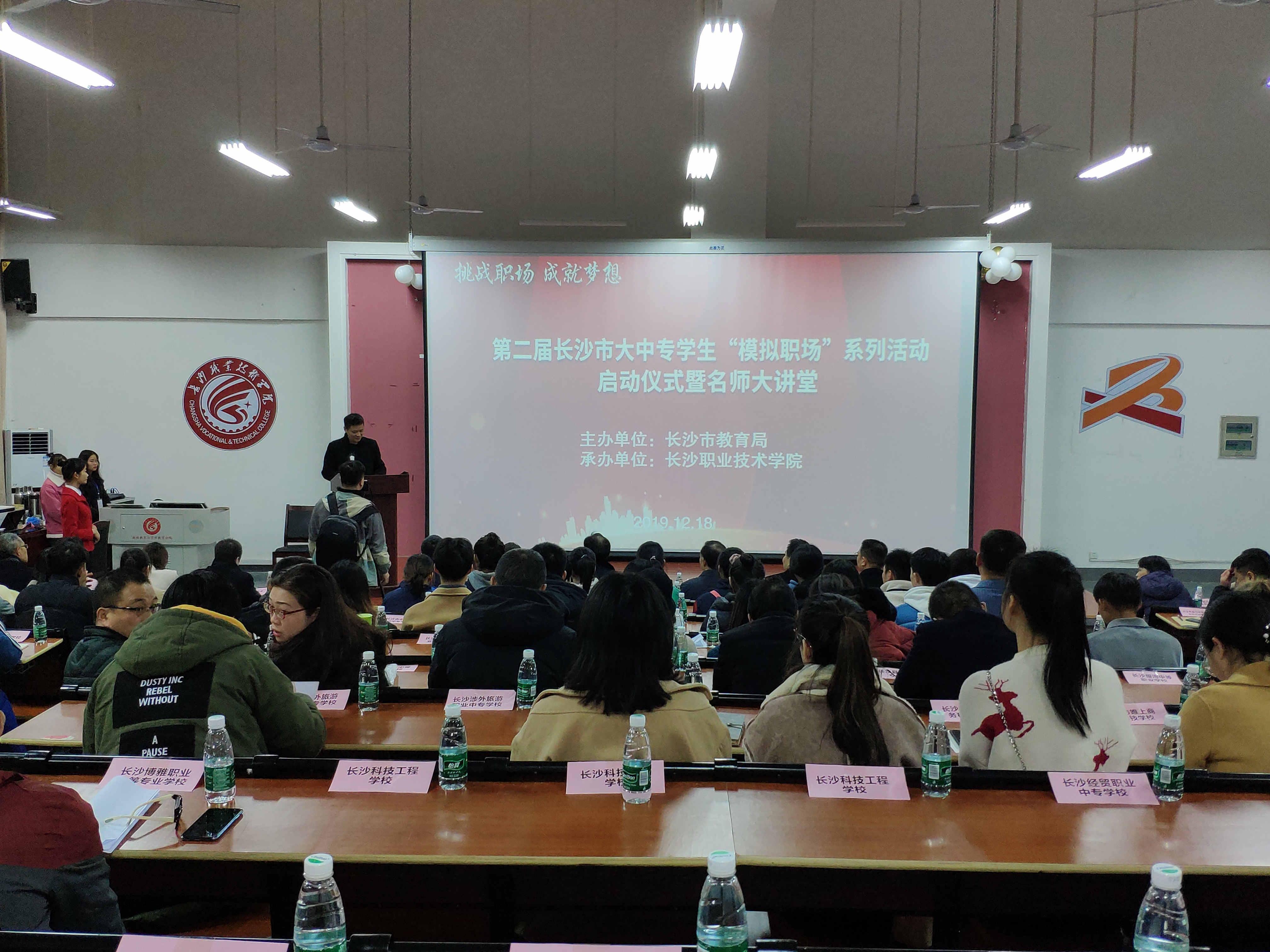 【香港商報網訊】記者 李銀明 報導:在湖南省教育廳、長沙市委、市政府的關懷和支持下,為加強長沙市大中專學生的就業指導工作,促進學生對求職階段的深入認知,使之樹立正確的就業觀,提高就業競爭力。2019年12月18日,由長沙市教育局主辦、長沙職業技術學院承辦的「長沙市首屆大中專學生模擬職場系列活動」啟動式在長沙職業技術學院拉開帷幕,長沙職業技術學院院長喻友軍、長沙市教育局副局長楊慶江、長沙職業技術學院副院長王虎城、長沙市教育局高教處處長丁郭、長沙職業技術學院招生就業處處長婁星明、長沙市教育局高教處副處長李滔出席了本次會議。