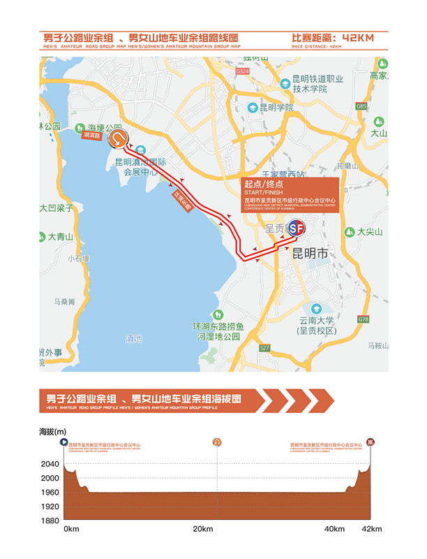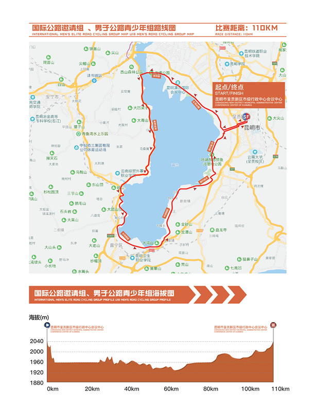 今年賽事邀請了來自國內外的20支高水平專業車隊,匯聚了國內青少年運動員和700餘名業餘選手。在賽道選擇上,沿用了經典的環滇池路線,比賽起終點均位於昆明市級行政中心昆明會堂廣場。國際公路邀請組、男子公路青少年組賽道環繞滇池一圈,總里程110公里;男子公路業餘組、男子山地車業餘組、女子山地車業餘組賽道滇池湖畔折返,總里程42公里。參賽選手們將在競技中體驗冬日昆明,陽光明媚、溫暖如春;美麗春城,人鷗歡暢、風景如畫。
