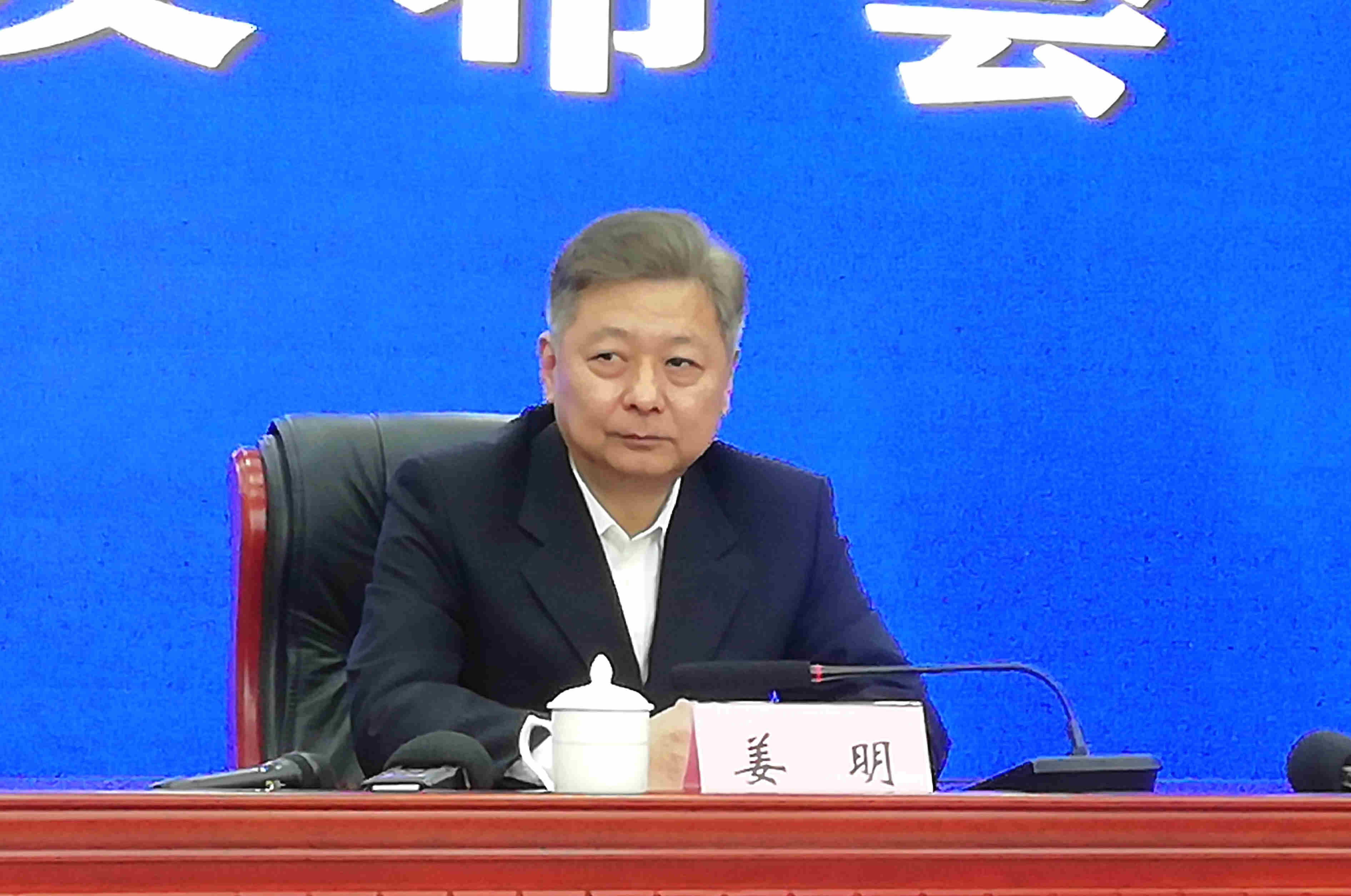 安徽省司法廳黨委書記、廳長姜明介紹有關情況(孫軍/攝)