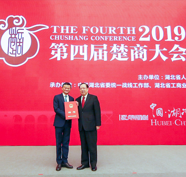 湖北省委副書記、省長王曉東向馬雲頒發聘書,聘任為湖北省人民政府經濟顧問