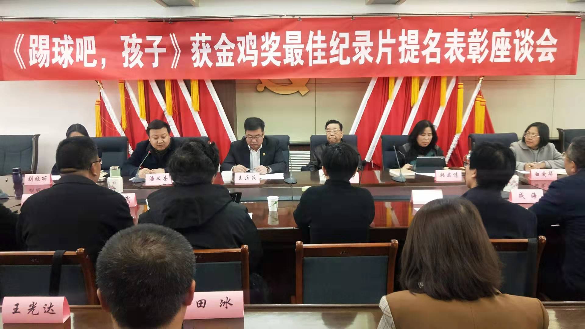 【香港商報網訊】記者 寇剛 報導:24 日上午,《踢球吧,孩子》獲金雞獎最佳紀錄片提名表彰座談會在蘭州舉行。會上,西北師範大學傳媒學院副院長馮曉臨,蘭州交通大學教授、作家張哲(爾雅),蘭州市電影發行放映公司副經理燕兵,甘肅省文藝評論家協會專職副主席于濤等業內專家,製片人王光達、導演趙國鵬、攝影田冰等主創成員,以及中連川小學校長馬安武、教練蔣丹丹等片中幾位主人公圍繞該片創作歷程、觀影感受、甘肅電影發展現狀及未來發展進行交流研討。