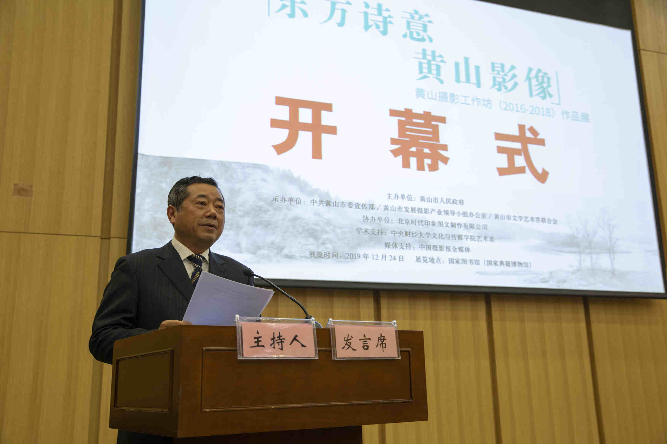 全國政協原副主席白立忱,全國文聯原副主席、書記處書記、全國政協委員夏潮,中宣部中國思想政治研究會秘書長吳建春,商務部美大司原司長江山,黃山市政協副主席、市發展攝影產業領導組常務副組長胡寧,中央財經大學副書記陳明,國家文旅部中外文化交流中心副主任劉紅革,國圖副館長張志清,黃山市文聯黨組書記、攝影辦主任蔣淩將等主禮開幕式。