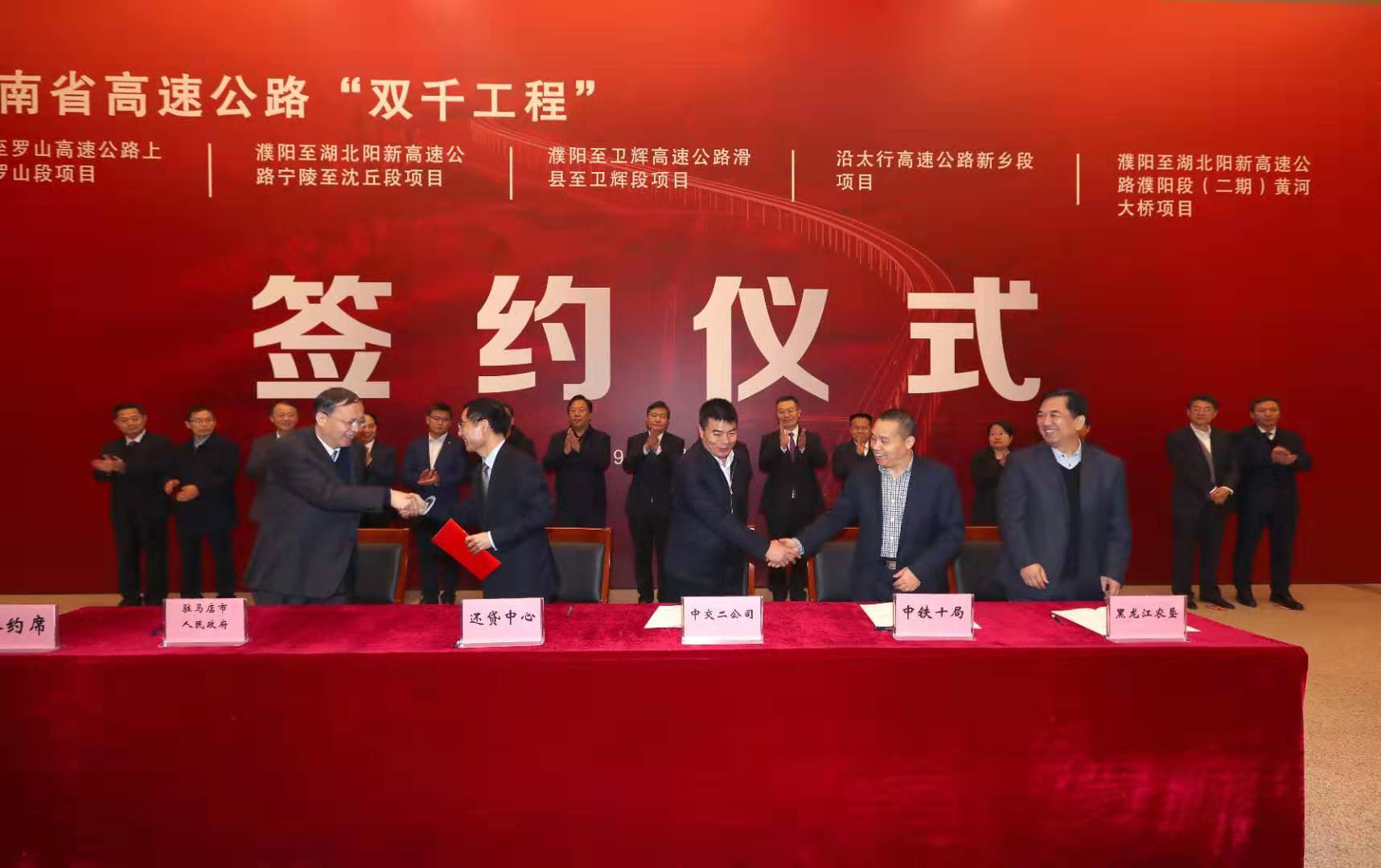 此次簽約儀式,由5個高速公路項目的投資人河南省收費還貸高速公路管理中心、河南省交通投資集團有限公司、中國中鐵、中鐵十局、中交二局、黑龍江農墾等單位有關負責人與新鄉、濮陽、駐馬店、信陽、商丘、周口、鹿邑、滑縣等市縣政府有關負責人分別簽訂投資、特許經營權、項目支持、「凈地」費用包乾等有關協議,河南省交通運輸廳、自然資源廳、發展和改革委、重點項目辦等有關省直部門領導共同見證了這一重大時刻。