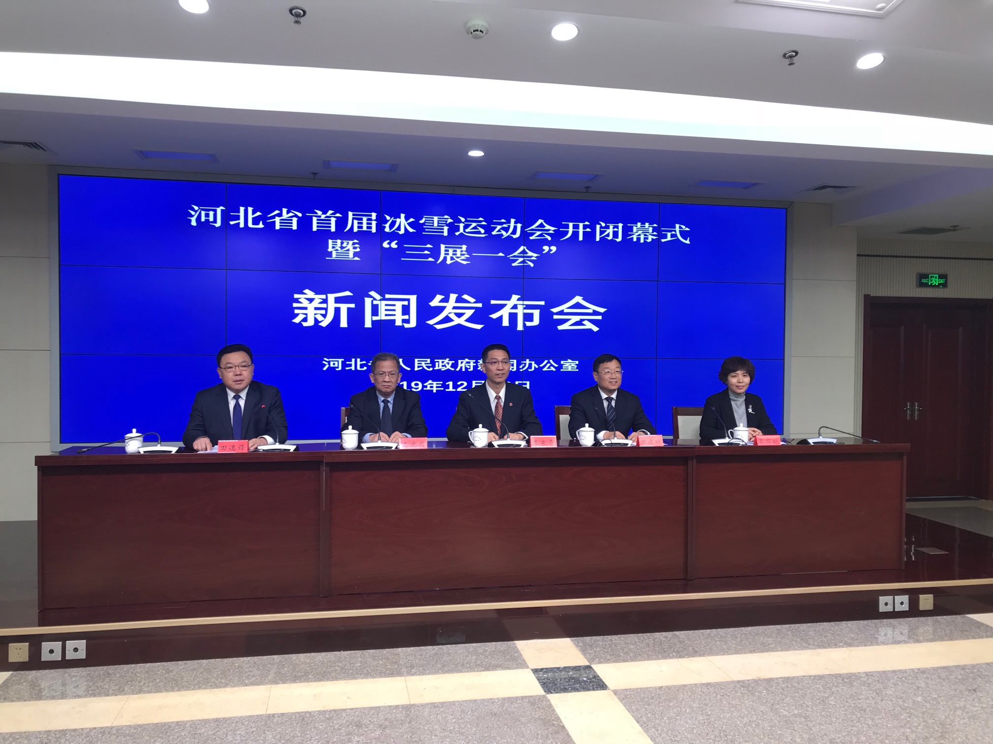 河北省政府新聞辦召開的「河北省首屆冰雪運動會開閉幕式暨‘三展一會’」新聞發佈會現場