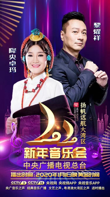 中央廣播電視總台《2020新年音樂會—揚帆遠航大灣區》將於2020年1月1日在中央廣播電視總台央視綜藝頻道、音樂頻道,央廣音樂之聲頻率、經典音樂廣播頻率、文藝之聲頻率、大灣區之聲頻率聯合播出,並在總台文藝節目中心各新媒體平台和央視頻客戶端同步上線。
