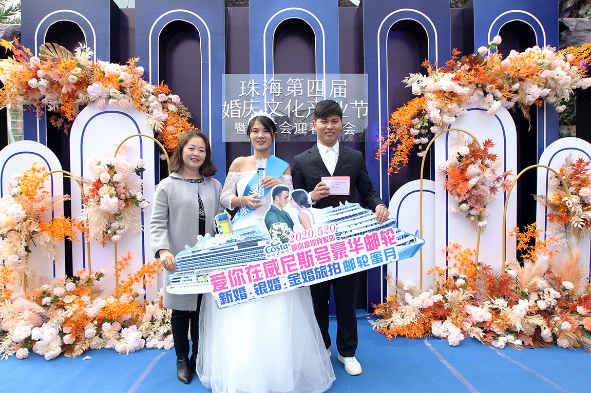 「婚禮是愛情的碩果,是人生的盛典。婚禮文化是21世紀的朝陽產業,中國的婚慶市場有着萬億元的消費商機。」珠海市婚慶協會會長赫九宇在致辭中表示,隨着人民生活及文化水平日益提高,婚慶市場還將往多樣化、專業化、精細化、網絡化、產業化及個性定製方向發展,今後蜜月旅拍、目的地婚禮將成為行業熱點。