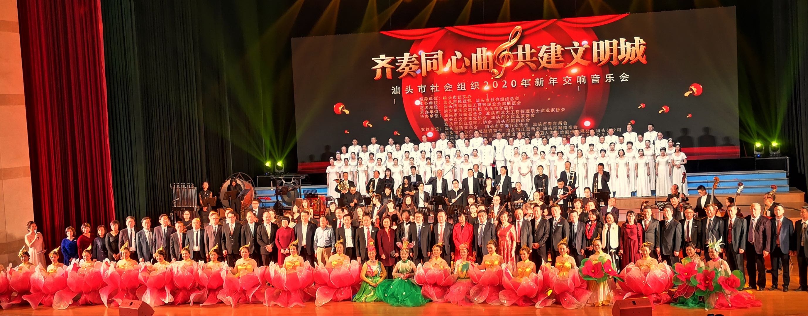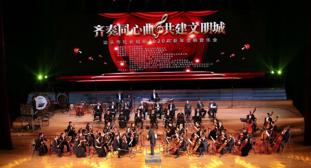 【香港商報網訊】記者 陳績盛 報導:一場由廣東省汕頭市民政局和汕頭市社會組織總會主辦,汕頭清華高級工商管理企業家聯誼會獨家冠名,汕頭市公益基金會、汕頭市北大工商管理碩士企業家協會、汕頭市女企業家協會等共同協辦的《齊奏同心曲﹒共建文明城》2020年新年交響音樂會於28日晚在汕頭市林百欣國際會展中心演出大廳上演,汕頭市委常委、副市長李宇到場祝賀並致辭,汕頭市政協副主席陳榕,市委宣傳部、市創文辦、文明辦、民政局等部門領導與汕頭市級近200家社會組織代表和市民歡聚一堂,聆聽高雅音樂藝術,共享一場聲音與文化互融發展的饕餮盛宴,喜迎2020年新年的到來。