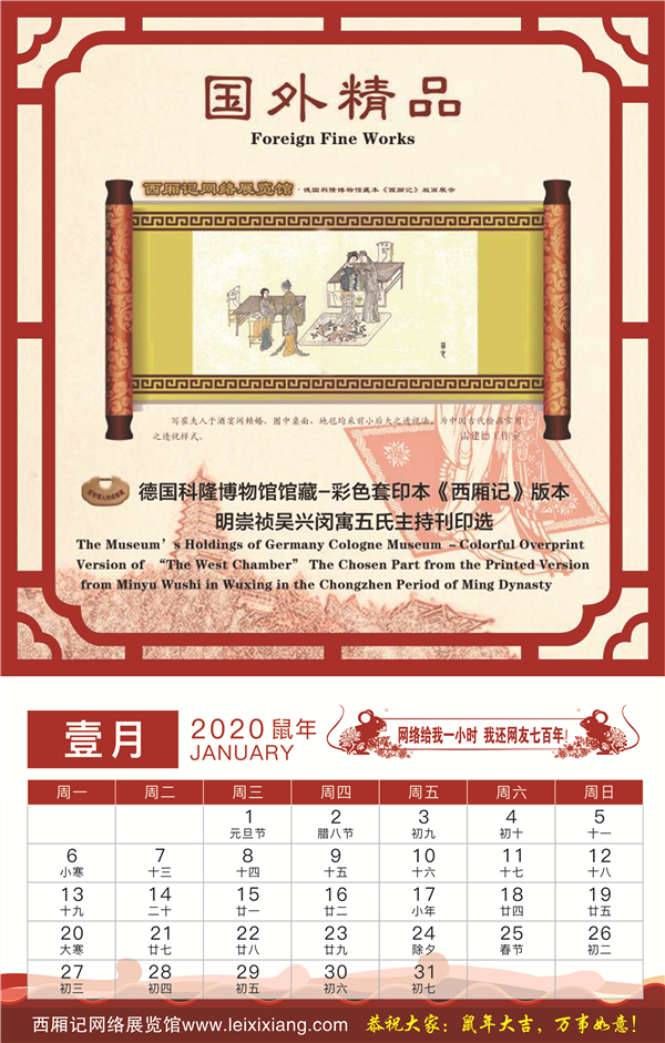 “西廂記網絡珍品2020鼠年掛歷”分為電子版、電子立體版與紙質版,集中展現了西廂記網絡展覽館12件國內外珍品力作。一件件精美絕倫的西廂主題作品,通過精心細緻的設計與創作,栩栩如生,如夢如幻。