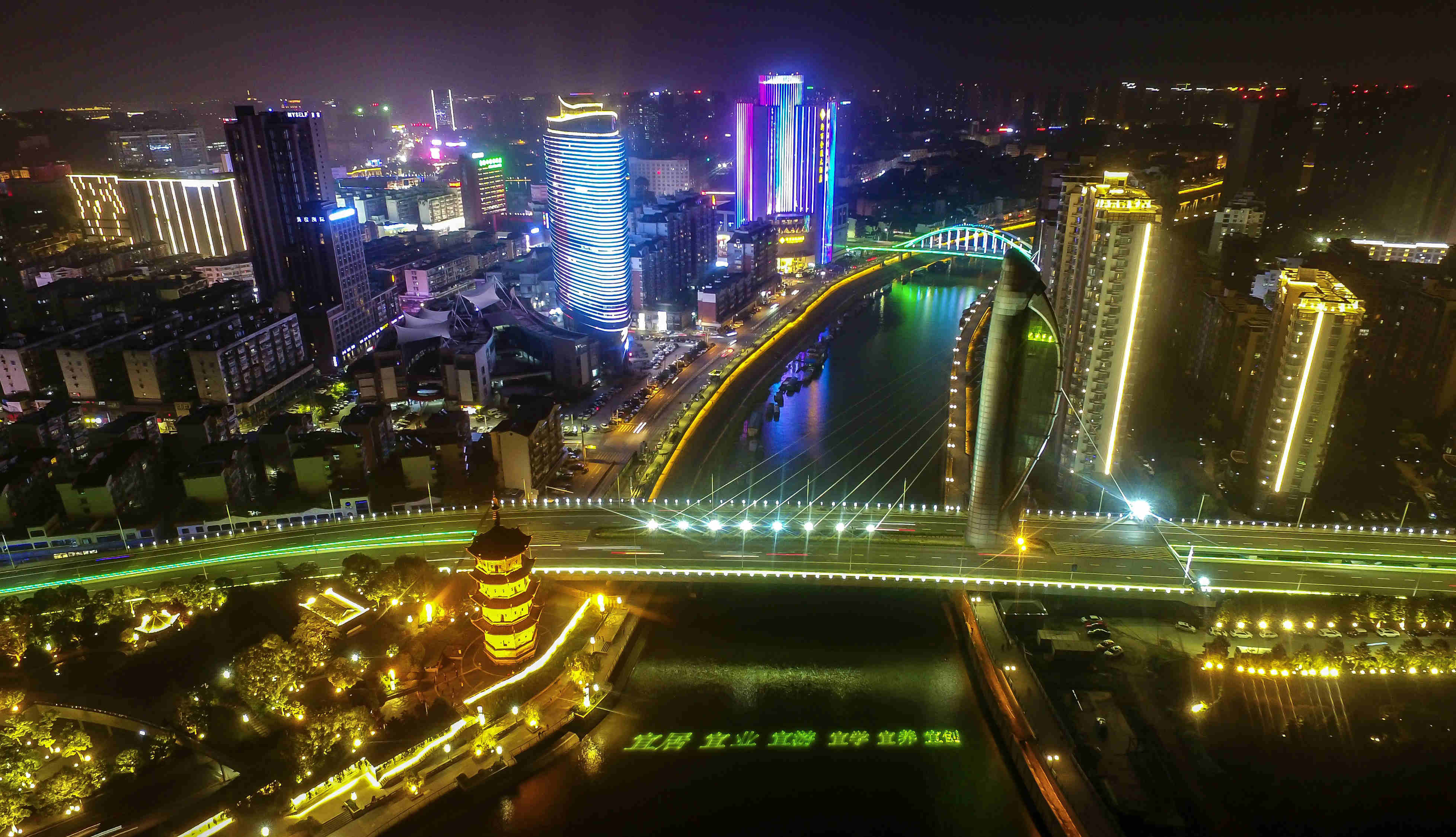 「十里江灣」夜色璀璨(鄭遠/攝)