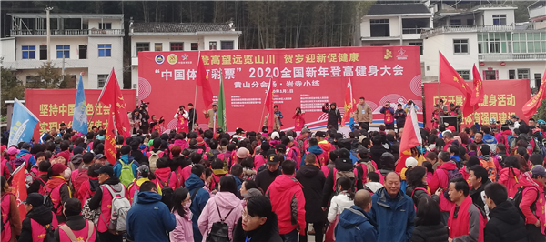 【香港商報網訊】1月1日,“中國體育彩票”2020全國新年登高健身大會,相約安徽黃山市徽州區岩寺·革命老區小練村,吸引了1000餘名遊客和市民前來參加,攜手登高為金鼠年迎來開門大吉。