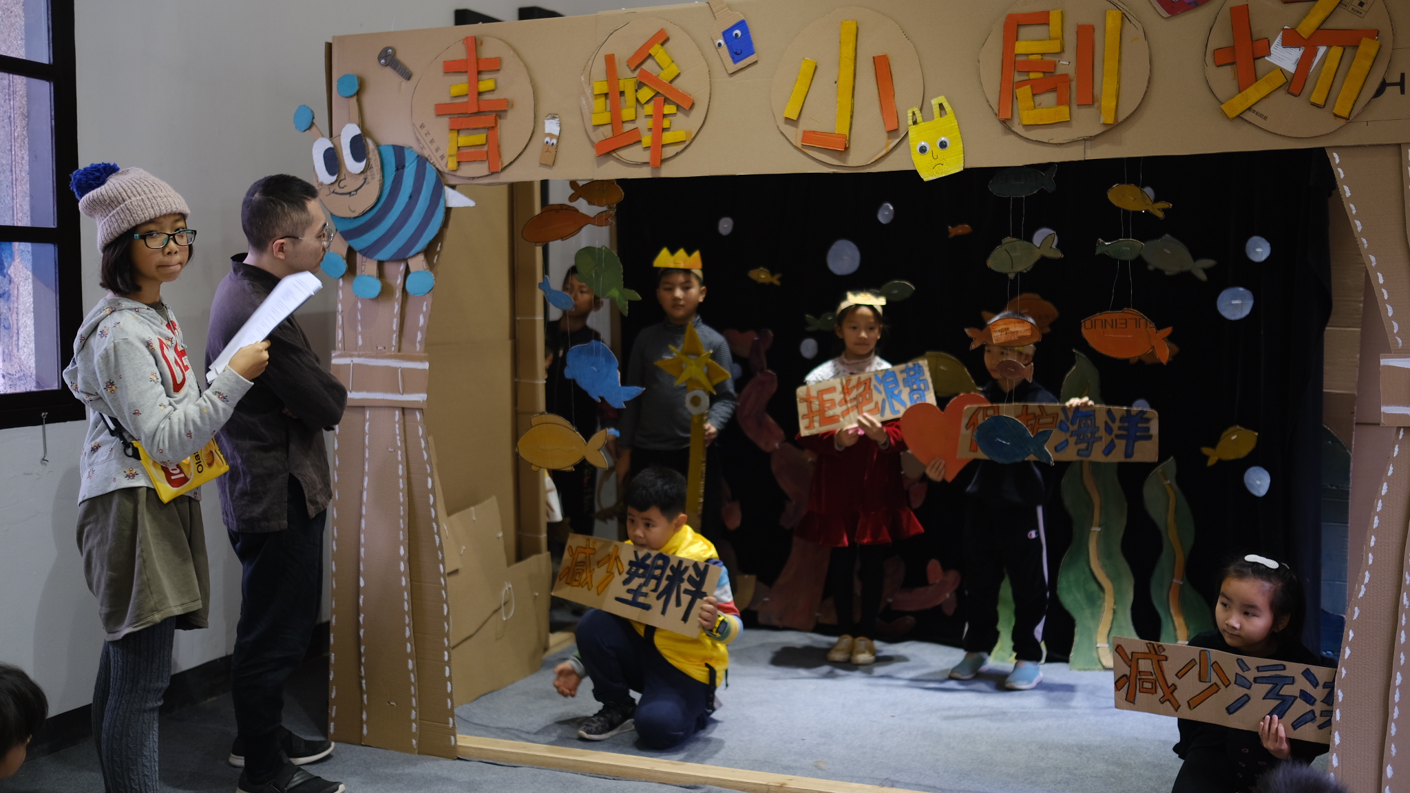 本次藝術節的公交單元人形木偶劇·社區兒童公教項目及工作坊由鰲湖美術館與青蜂讀書會合作創作。劇本在原作基礎上作出針對鰲湖小朋友創作的變化,緊扣現實生活主題,結合村莊故事,利用村中物資創作和製作舞台背景,採用真人扮演人偶的方式,與鰲湖的小朋友們展開充分的互動與體驗,讓孩子們從中體驗到從劇本改編、布景製作到表演的全過程趣味。
