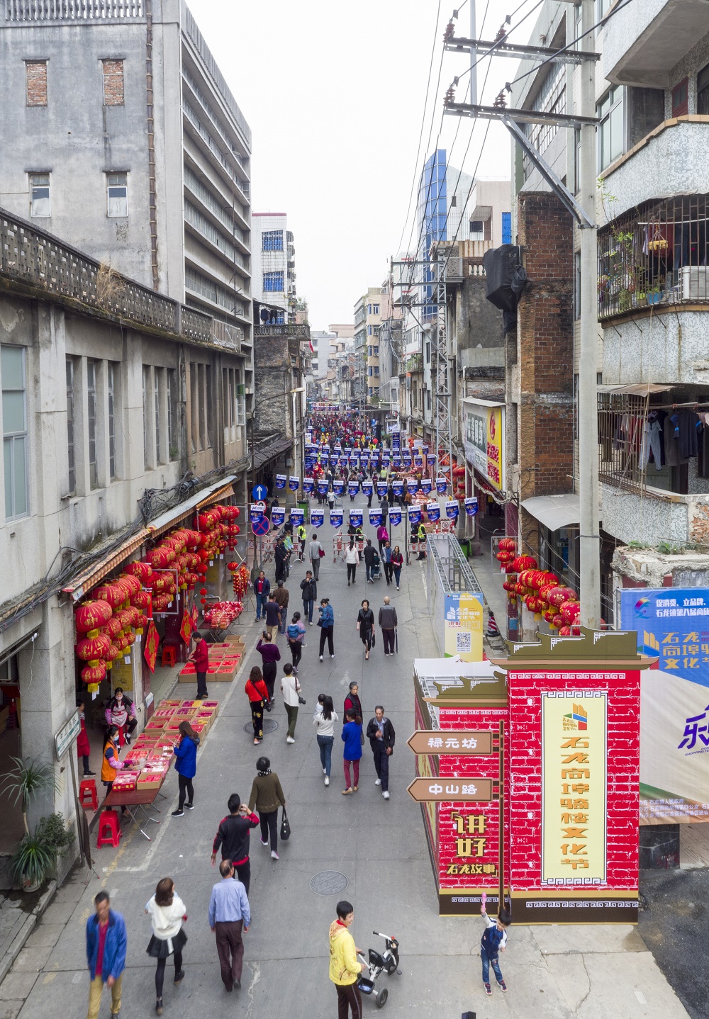 其中為配合「祿元坊」這一年代主題,文化節入口將擺設非遺手工藝與傳統小吃的攤位,超過100個石龍及周邊鎮區的特色美食、非遺手工藝、文藝和娛樂攤位,分佈在騎樓兩側。(冷運軍 陳嘉欣)