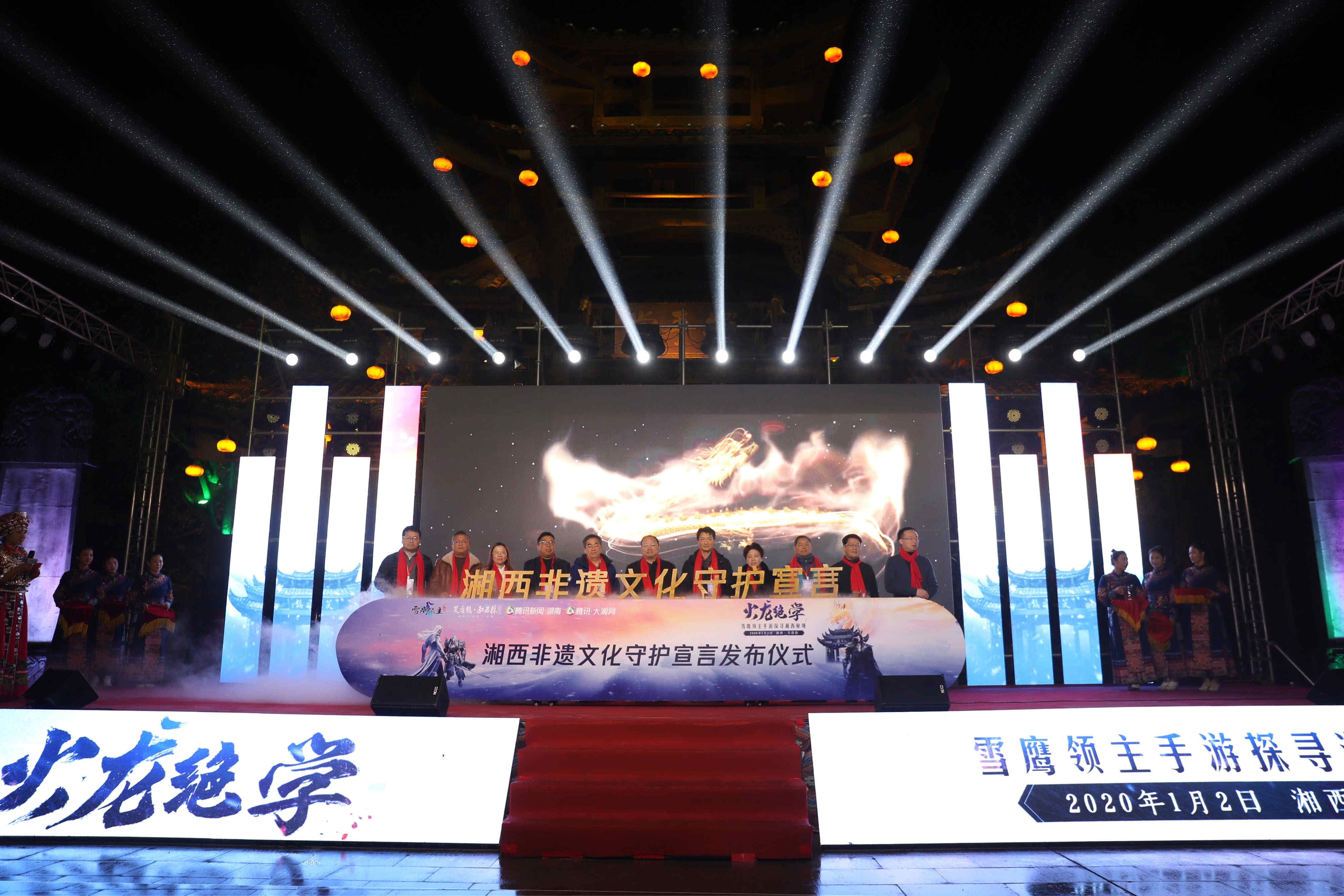 【香港商報網訊】2020年1月2日晚,“鋼火燒龍”點燃了湘西芙蓉鎮·紅石林度假區開年來的第一把“火”!騰訊《雪鷹領主》手游攜手湘西非遺技藝“鋼火燒龍”在芙蓉鎮·紅石林度假區隆重舉行“火龍絕學·探尋湘西秘境”湘西非遺文化守護宣言發佈儀式。