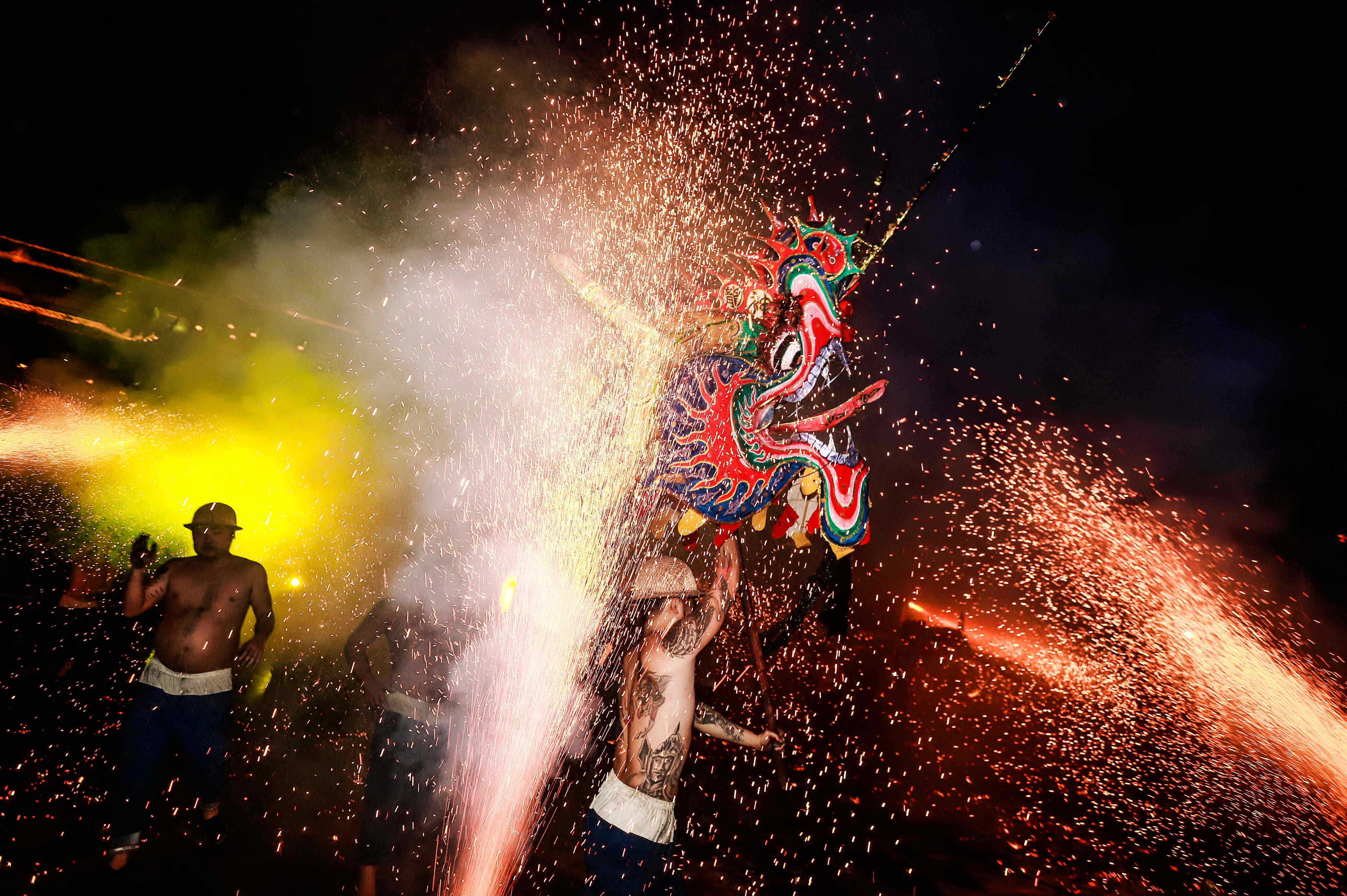 夜幕下,數十個漢子揮舞著一條威猛的祥龍翻雲騰霧,鋼火師接連點燃鋼火竹筒,橘紅色的鋼花齊刷刷朝著龍身飛瀉,精彩的“鋼火燒龍”儀式和《花開芙蓉·畢茲卡的狂歡》系列節目陸續上演。硝煙與火光中,龍身若隱若現,穿梭來往,仿佛下一刻就會趁勢而起沖上雲霄。鋼火映照下,漢子們擎著火龍揮舞奔跑,野性的吼叫震耳欲聾,仿佛江河在咆哮;土家少女婀娜的身姿與土家漢子雄渾的戰舞,展現著湘西非遺的唯美與神秘…在現場熱烈的氣氛中,迎來了雪鷹火龍絕學在湘西的完美落地。