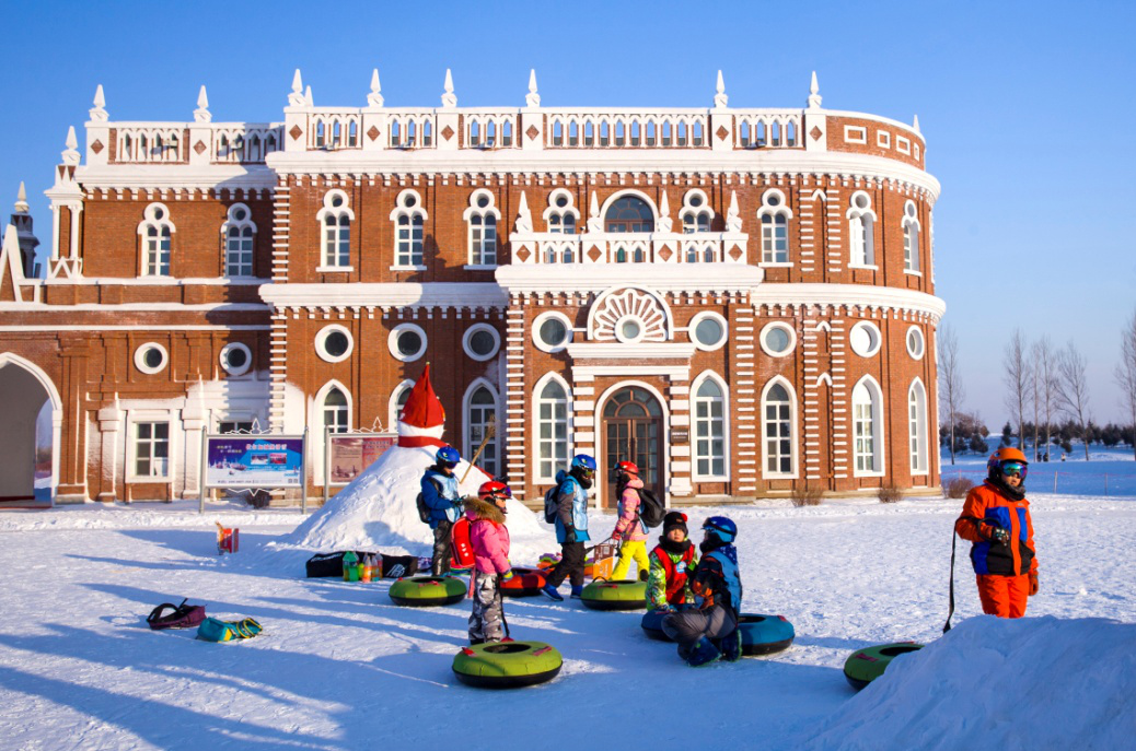 滑行穿過彼得門,伏特加酒堡映入眼帘,這座建築原型為俄羅斯「畢普」城堡,是俄歷史上著名的古堡,是中國首個伏特加酒為主題的城堡。酒堡用特製的冰酒杯盛飲伏特加,提杯一飲而盡,手涼心熱、冰封至燃燒的體驗,終生難忘……