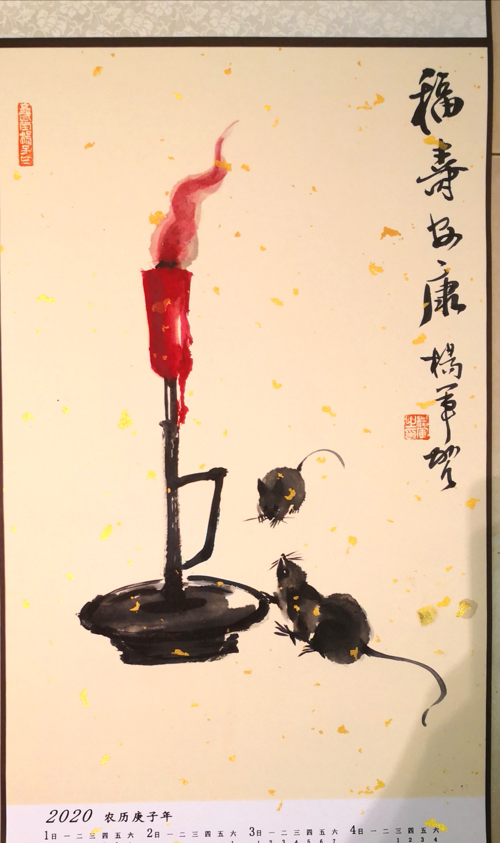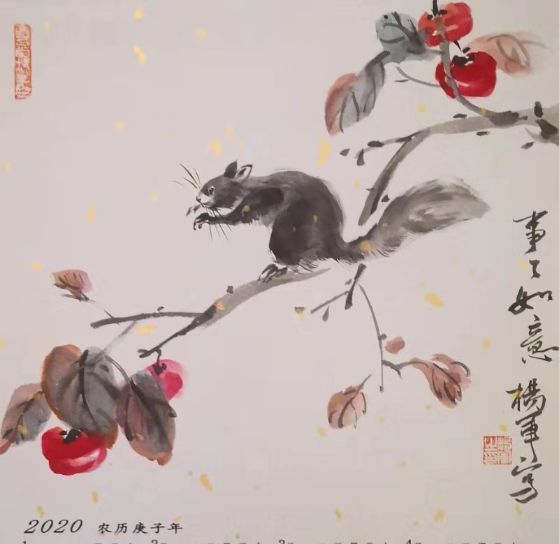 浙江畫家楊軍,1969年11月出生,安徽南陵人。1987年入伍,武警浙江總隊副團職轉業,現在海關工作。他尤擅畫馬,舉辦過絲路追風,絕影追風等個人畫展。鼠年來臨之際,楊軍也畫了一些鼠掛曆贈送親朋好友,以鼠寓意美好祝福,恭祝新年吉祥。畫中體現出一種純真、質樸、詼諧、旺盛的生命力,也飽含著對朋友的真情實感以及對美好生活的嚮往。(王學東)