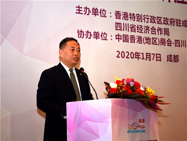 四川省經濟合作局二級巡視員陳俚君在致辭時說,香港是重要的國際、金融、貿易和航運中心,也是四川省的戰略合作夥伴,在雙方共同努力下,川港兩地人民往來更加密切,交流合作不斷深化,形成了政府規劃、高層推動、各方參與、互利共贏的良好格局。在高層互訪方面,四川省政府與香港特區政府保持着良好的溝通聯繫。近年來,雙方代表團多次互訪,推動川港在金融、經貿等重點領域共同發展,去年川港政府簽署建立川港合作會議合作機制,標誌着川港合作從地震援建、民間交流提升到地方政府間全方位和機制化合作,為兩地進一步深化合作奠定了堅實基礎。在來川投資方面,內地與香港關於建立更緊密經貿關係的安排,川港在擴大服務貿易准入、赴港個人自由行、投資簡化程序、知識產權保護等許多重要領域開展合作,截止2019年11月,香港在川投資外商企業5462家,實際到位資金647.61億美元,是四川第一大外資來源地。10餘年來,香港和記黃埔、怡和等世界500強企業和中華電力、中華煤氣、新鴻基、新世界等知名企業紛紛投資四川,在過去自身業績良好的同時,也為四川經濟社會發展做出了巨大貢獻。在民間往來方面,兩地遊客不斷增加雙方在教育、文化、衛生、科技等領域的交流,特別是青少年交往更加活躍,築牢了持續合作發展的根基,從1999年中央政府贈港大熊貓安安、佳佳到2007年的大熊貓樂樂、瑩瑩,再到2016年香港援助卧龍災後重建工作,川港民間以熊貓為媒介情誼深厚。