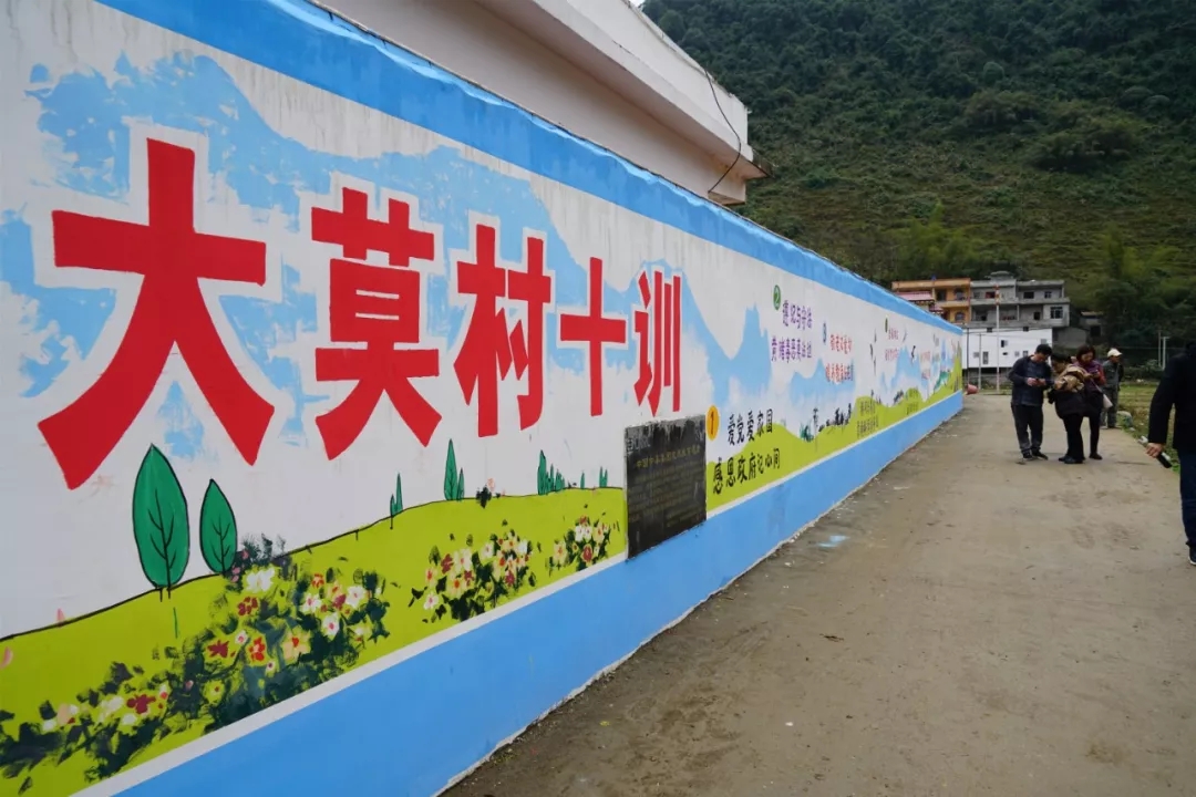在大莫村,大芬畫家與靖西農民畫家進行了座談交流,同時對當地農民畫家進行了繪畫培訓,隨後大芬畫家詳細了解了大莫村的傳統文化特色,在大莫村弄關屯每年春節期間都會舉辦鬥牛、鬥雞活動,吸引千名遊客前來觀看,為牆繪創作內容提供了靈感。培訓結束後,大芬畫家與靖西農民畫畫家一同對大莫村鬥牛場旁村民房外牆進行繪製,從苗族、壯族、邊關的地域特徵和文化特徵上挖掘創作資源,以藝術介入的方式促進了邊境文化資源的保護和發展,藝術與鄉村的共融共生,讓文化發展的成果最大限度地惠及邊境地區人民。