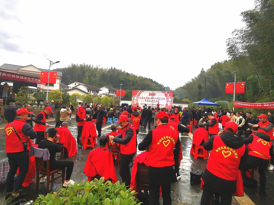 當天,正好撫州市文廣新旅局組織文藝輕奇兵新春送戲下鄉和送春聯猜謎語、攝影進萬家服務隊也在該村開展系列活動。整個小山村沸騰了,村民們奔相走告。村民洪大爺高興地說:“今天我們村好熱鬧,又有大戲看,還有春聯拿,猜謎語,拍攝全家福,還有這麼多理髮師為大家理髮,而且都是免費的,真是太好了,這個年過的真舒心,真幸福。”