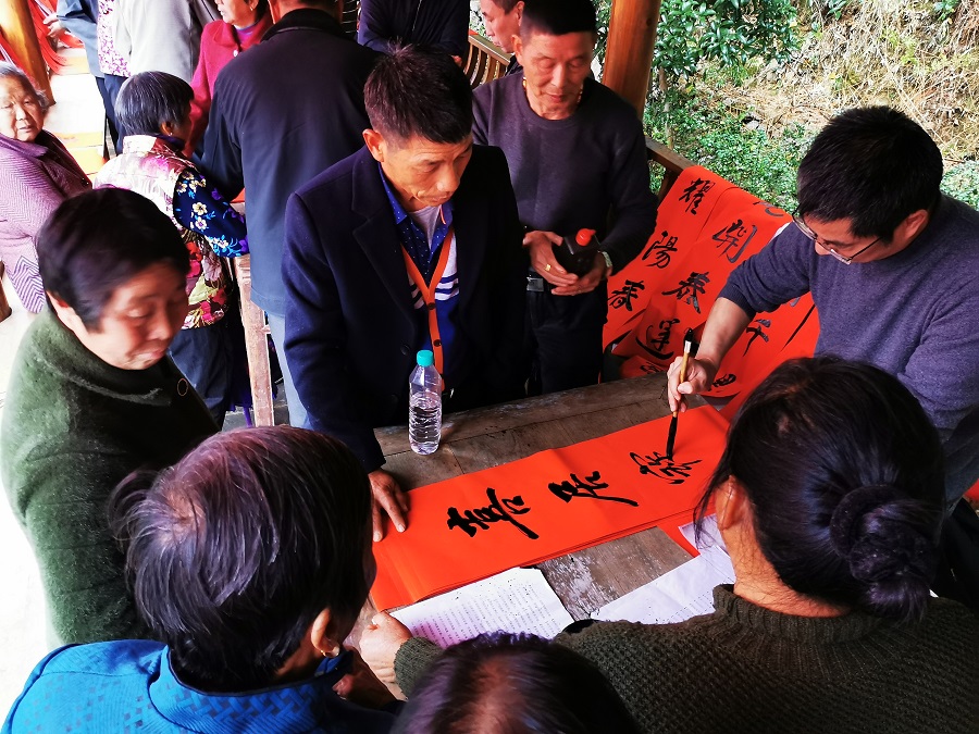 書法家們為村民寫新春佳聯(李勇 攝)