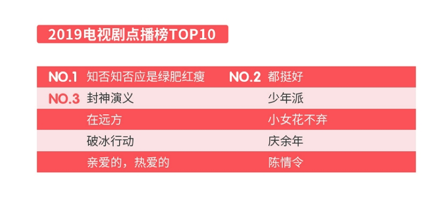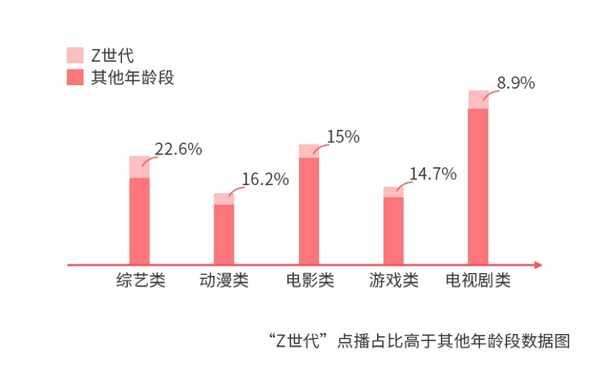 他們主要的觀看時間在20點以後,在22點以後達到高峰。而與其他年齡段的觀眾相比,“Z世代”的點播偏好更傾向於綜藝和動漫。2019年點播關鍵詞的TOP.3分別是“閱兵集錦”“女排奪冠”和“開國大典”。明星點播榜中,排在前三位的分別是趙麗穎、古天樂和楊冪。《知否知否,應是綠肥紅瘦》《都挺好》和《封神演義》佔據了電視劇點播榜的前三位;電影點播榜的前三位則分別是《哪吒之魔童降世》《流浪地球》和《戰狼2》。