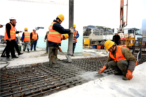 說起中跨的建設過程,項目書記馮能回憶道,「儘管直線距離只有140米,但這段距離包含了太多的安全因素,對於項目部來說儼然就是『咫尺天涯』」。據了解,該橋上跨的貴陽火車站是黔桂鐵路、滬昆鐵路、川黔鐵路以及貴開城際鐵路交匯的重要交通樞紐,每天接發列車數以百計,任何一點小的失誤都有可能造成嚴重的後果,為確保大橋順利相連且不影響列車的正常運行,項目部在巨大的施工壓力下,利用有效的「天窗點」時間,採用鋼管立柱和特殊鋼桁梁組合結構形式搭設了面積為3698平方米西南地區跨鐵路最大防護棚架。同時,24小時安排專人對防護棚架進行反覆安全巡查,確保在這頂「安全帽」下列車安穩運營,「安全帽」上樑體節段施工火熱進行。