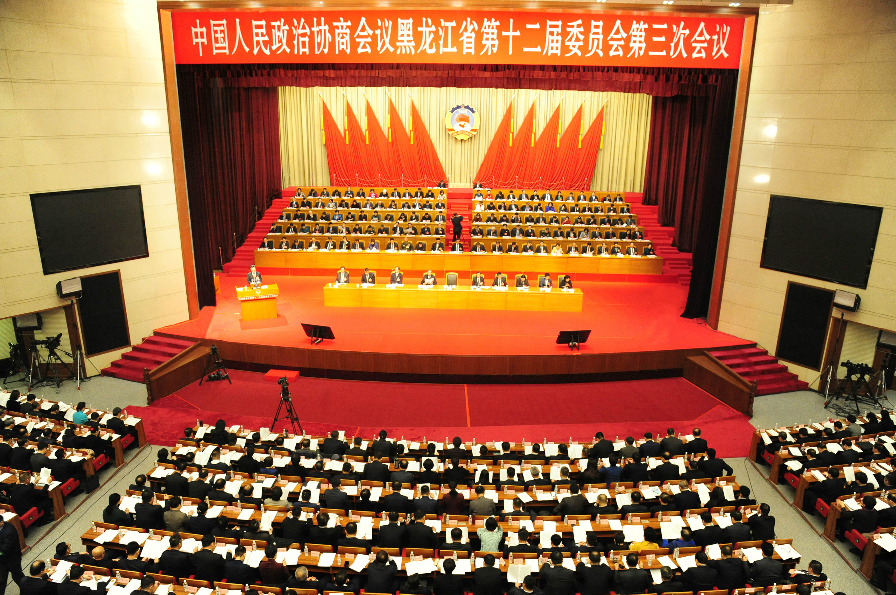 【香港商報網訊】1月11日,中國人民政治協商會議黑龍江省第十二屆委員會第三次會議在哈爾濱國際會議中心環球劇場隆重開幕。來自全省各黨派團體、各族各界的政協委員,將在為期4天半的會議中,圍繞中心工作,聚焦熱點難點問題,認真履行職能,為推動龍江全面振興全方位振興積極建言獻策。