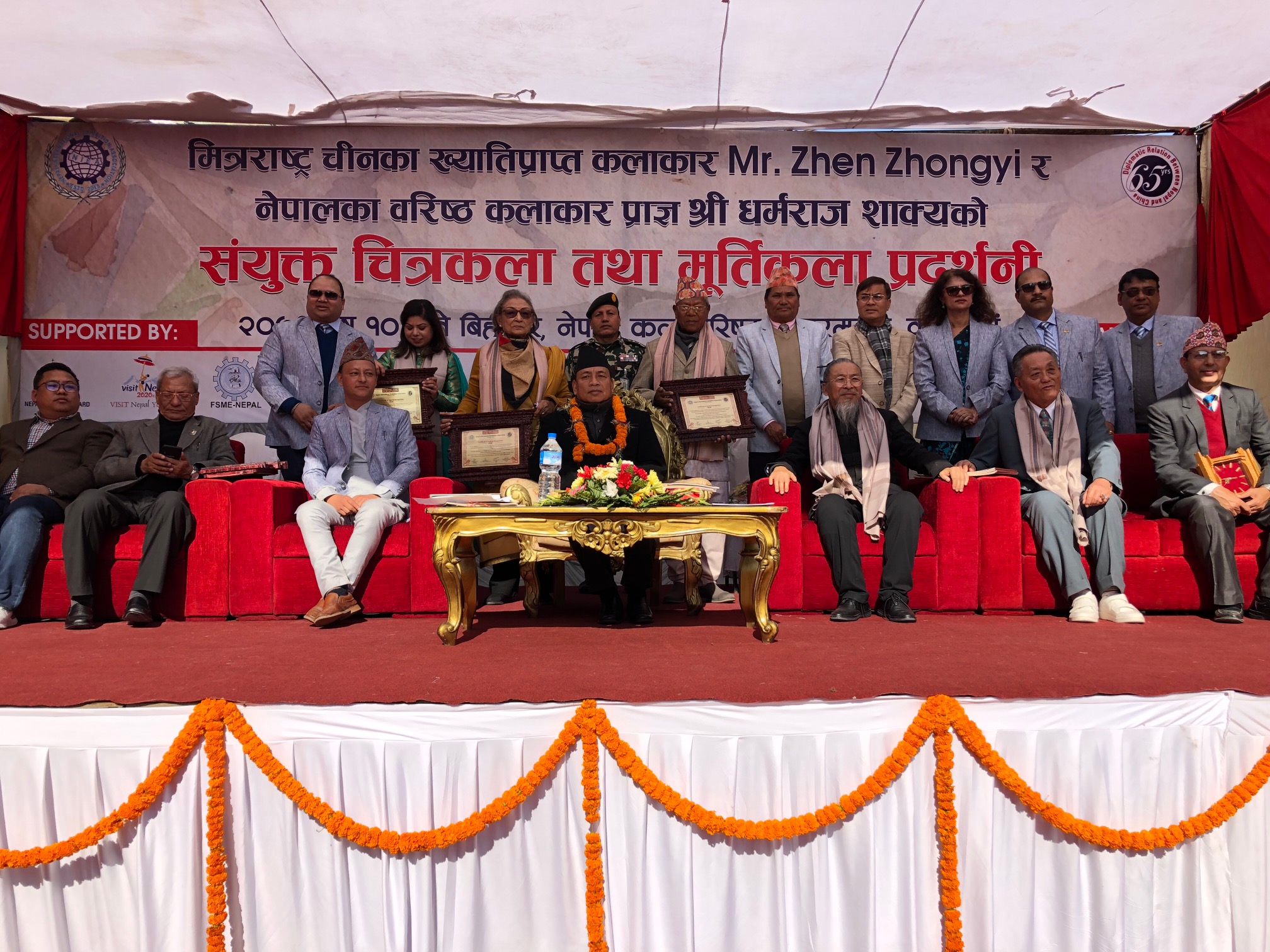 甄忠義博士率團對尼泊爾開展了為期一周的文化藝術交流,考察了尼泊爾的傳統藝術工藝。尼泊爾共產黨聯合主席普拉昌達、副總統普恩、前副總理陶普·巴哈杜爾·拉雅馬吉,以及教育與科技部長博克瑞爾等分別會見了甄忠義博士一行,雙方就加強文化交流互鑒和聯合培養留學生等進行了深入探討並達成合作意向。中國駐尼泊爾大使侯艷琪也會見了甄忠義博士一行,彼此就促進中尼人文領域合作、加強互學互鑒等方面進行了交流。甄忠義博士表示,將努力加強與尼泊爾的文化藝術交流合作,為促進兩國文化藝術交流與發展貢獻力量。(楊秀嶺 張傑)