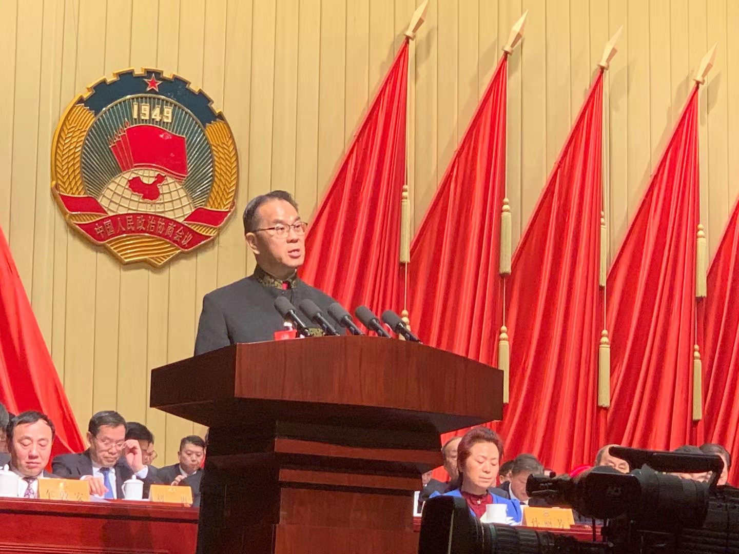 在政協第十二屆安徽省委員會第三次會議開幕會上,周伯展委員代表香港地區全體委員發言(孫軍/攝)