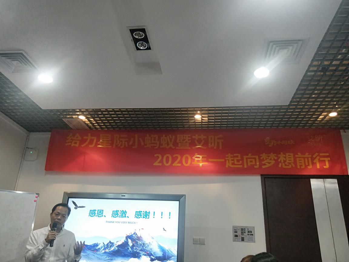 會後全體成員前往深圳南山朗山酒店舉行隆重的2020年年會,年會主題為“給力星際小螞蟻暨艾昕,2020年一起向夢想前行”。