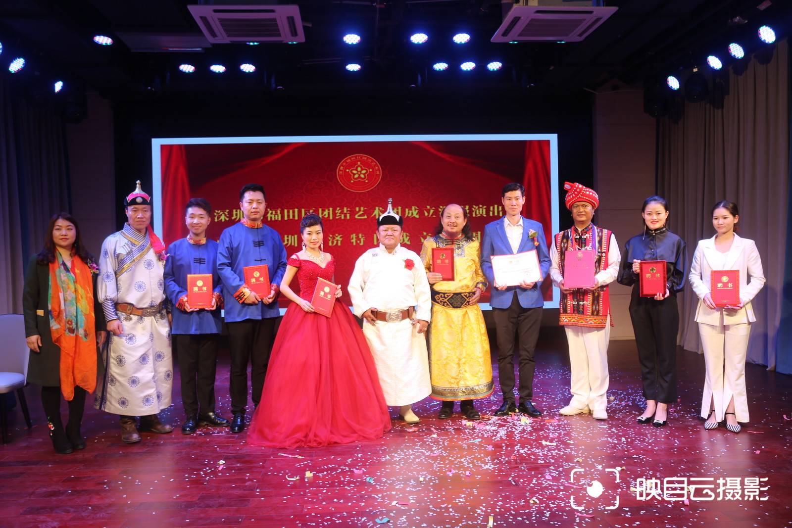據《演藝圈網》執行總編、活動總策劃張千科介紹:藝術團的名譽團長是世界非物質文化遺產傳承人、國家一級演員長調歌唱家烏雲畢力格老師攜同愛人莎日蓋(國家二級演奏員兼作曲家)從內蒙古千里迢迢趕來祝賀並參與現場演出。深圳市民族團結發展促進會副會長、南山區民促會會長吳金富現場表演了京韻大鼓《重整河山待後生》等。還有著名主持人趙忠老師現場把控,調節氣氛,這次的演出還有青年女高音歌唱家:香港非物質文化遺產花木蘭藝術團副團長、歌手楊潔老師,全國金鐘獎原黑珍珠組合主唱岩旺老師,出生在科爾沁草原的深圳草原歌王烏蘭巴特老師,2008年達人秀唱夢中的額吉原唱小孩巴特爾道爾吉老師帶著他的原生態組合,顯鄂溫克民風和現代音樂的結合。藝術團的創始三位團長,團長賀喜格圖、副團長吳曉梅、副團長烏蘭薩婭、副團長拉姆也加入其中和大家一起施展了才藝。多次參加廣東省大型活動擔任舞蹈主流的張麗老師帶團隊支援。深圳市民族团结发展促进会艺术团舞蹈队的多民族舞蹈为演出更加豐富了演出的多元化添加了更多的風采,彙報演出在《我和我的祖國》大合唱中落下帷幕。