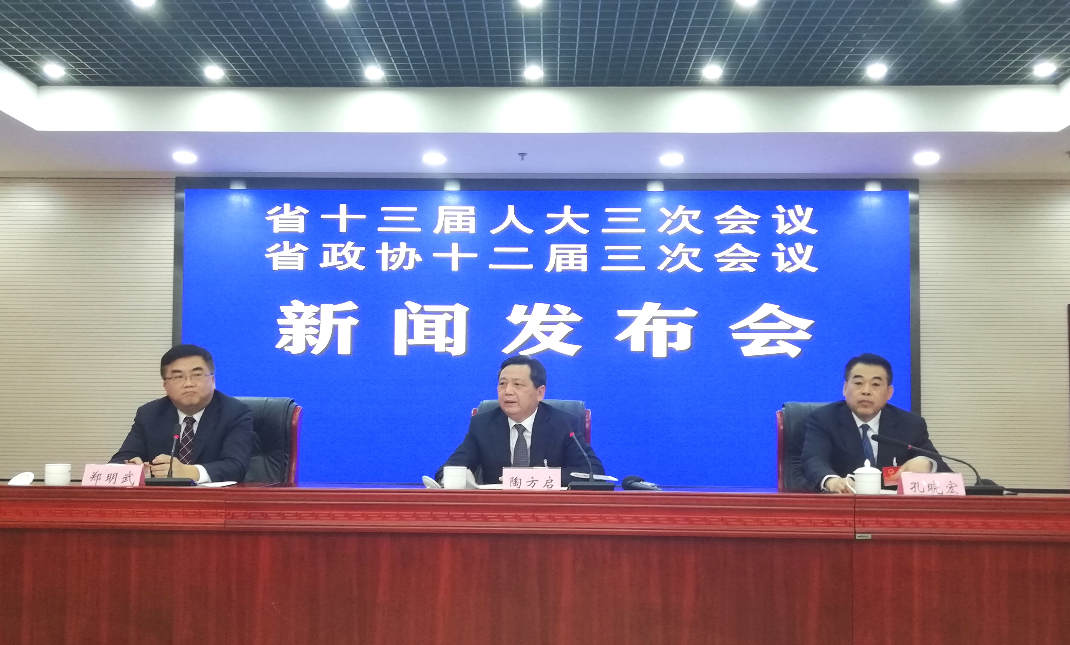 發佈會現場。左起:安徽省委宣傳部部務委員、省政府新聞辦主任鄭明武主持,宣城市委書記陶方啟、市長孔曉宏出席(孫軍/攝)