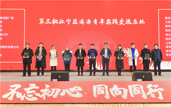2018年以來,江寧區委統戰部開展港澳青年實踐交流基地建設,力爭用3年左右的時間建設100個港澳青年實踐交流基地,讓更多的港澳青年體驗國情、了解內地、認知江寧。兩年來,南京江寧區共打造了30家「江寧區港澳青年實踐交流基地」,活動當天再次為20家「江寧區港澳青年實踐交流基地」舉行授牌儀式。