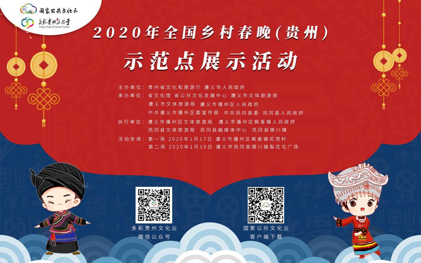 【香港商報網訊】為進一步豐富基層群眾節日文化生活,擴大公共文化服務覆蓋面,增強實效性,提升文化活動群眾參與度,由貴州省文化和旅遊廳、遵義市人民政府主辦的2020全國鄉村春晚(貴州)示範點展示將於1月17日在遵義市播州區楓香鎮花茂村拉開帷幕。