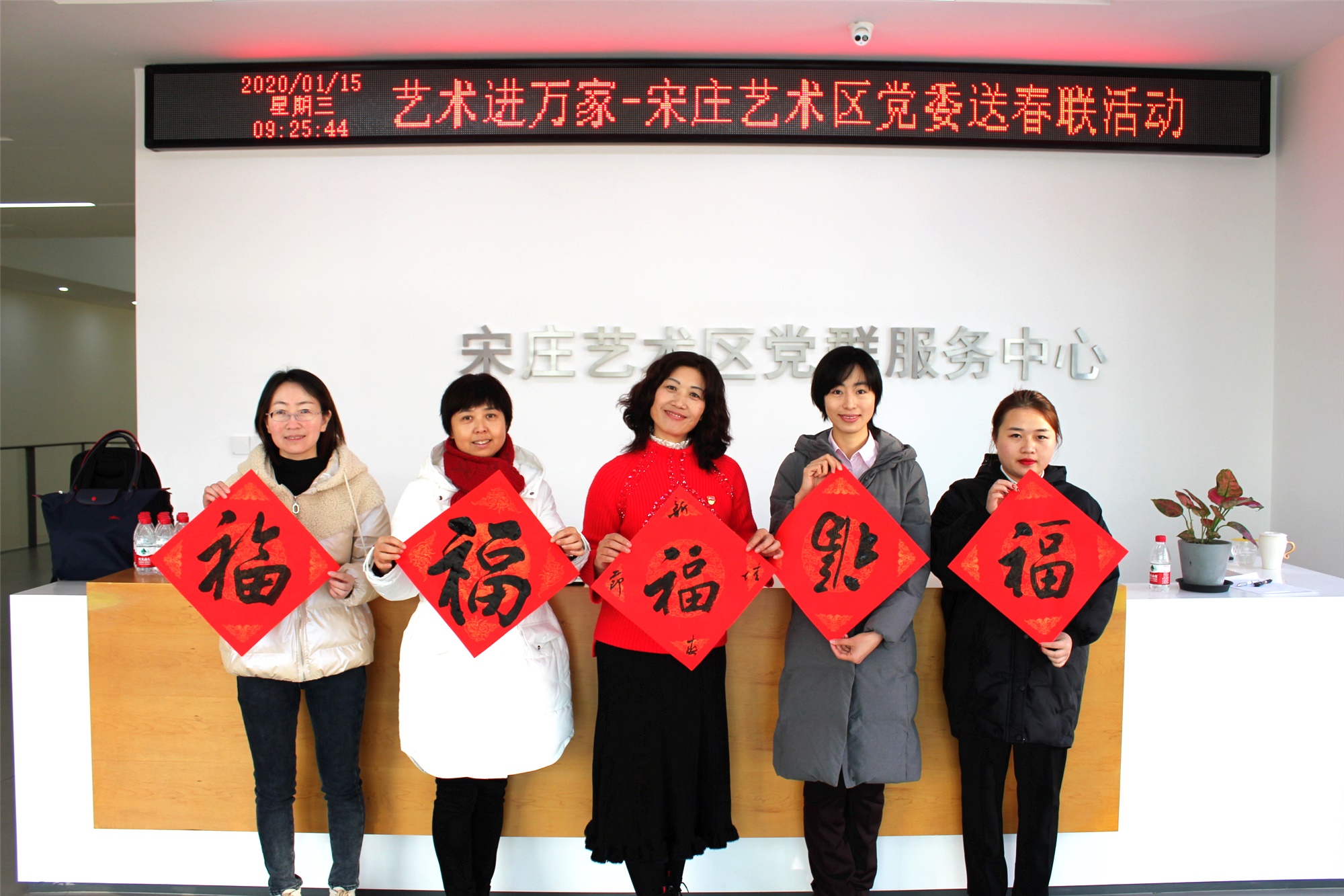 2020年1月15日上午八點半剛過,記者在緊鄰北京城市副中心行政辦公區北側的通州宋庄藝術區看到,由宋庄鎮黨委主辦、宋庄藝術區黨委承辦的「藝術進萬家—宋庄藝術區黨委送春聯」活動在宋庄藝術區黨群服務中心舉行。十多位紮根宋庄藝術區的藝術家,一大早就來到黨群服務中心,擺放好筆墨紙硯,開始寫春聯、書「福」字。