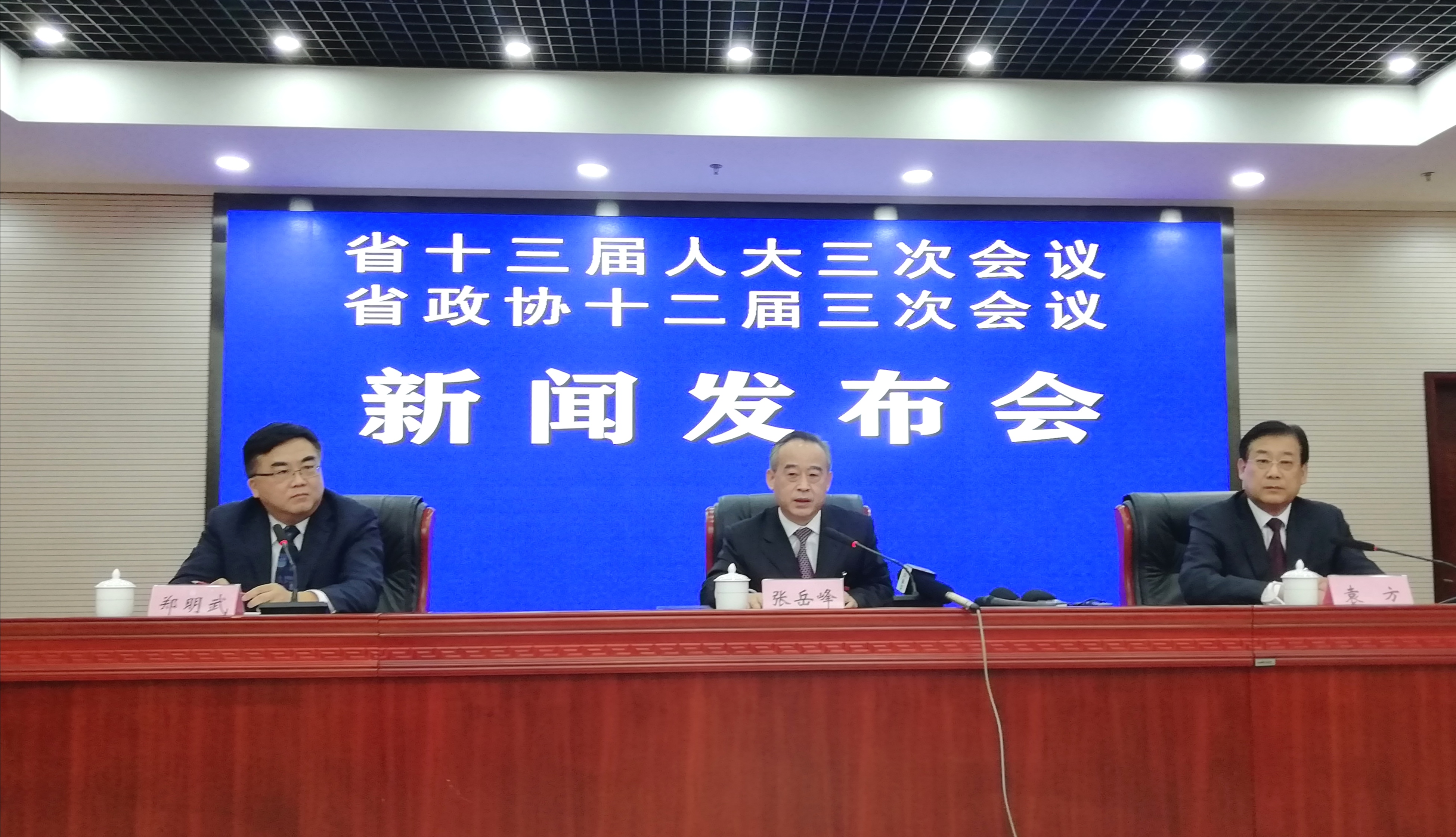 長江生態環境治理的「馬鞍山實踐」新聞發佈會現場,左起:安徽省委宣傳部部務委員、省政府新聞辦主任鄭明武主持發佈會,馬鞍山市委書記張岳峰、馬鞍山市人民政府市長袁方介紹相關情況並回答記者提問(孫軍/攝)