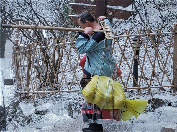 這場小雪的到來,給來山遊客帶來了不少驚喜,他們紛紛用手機、相機拍照留念,臉上洋溢著節日臨近的喜悅。