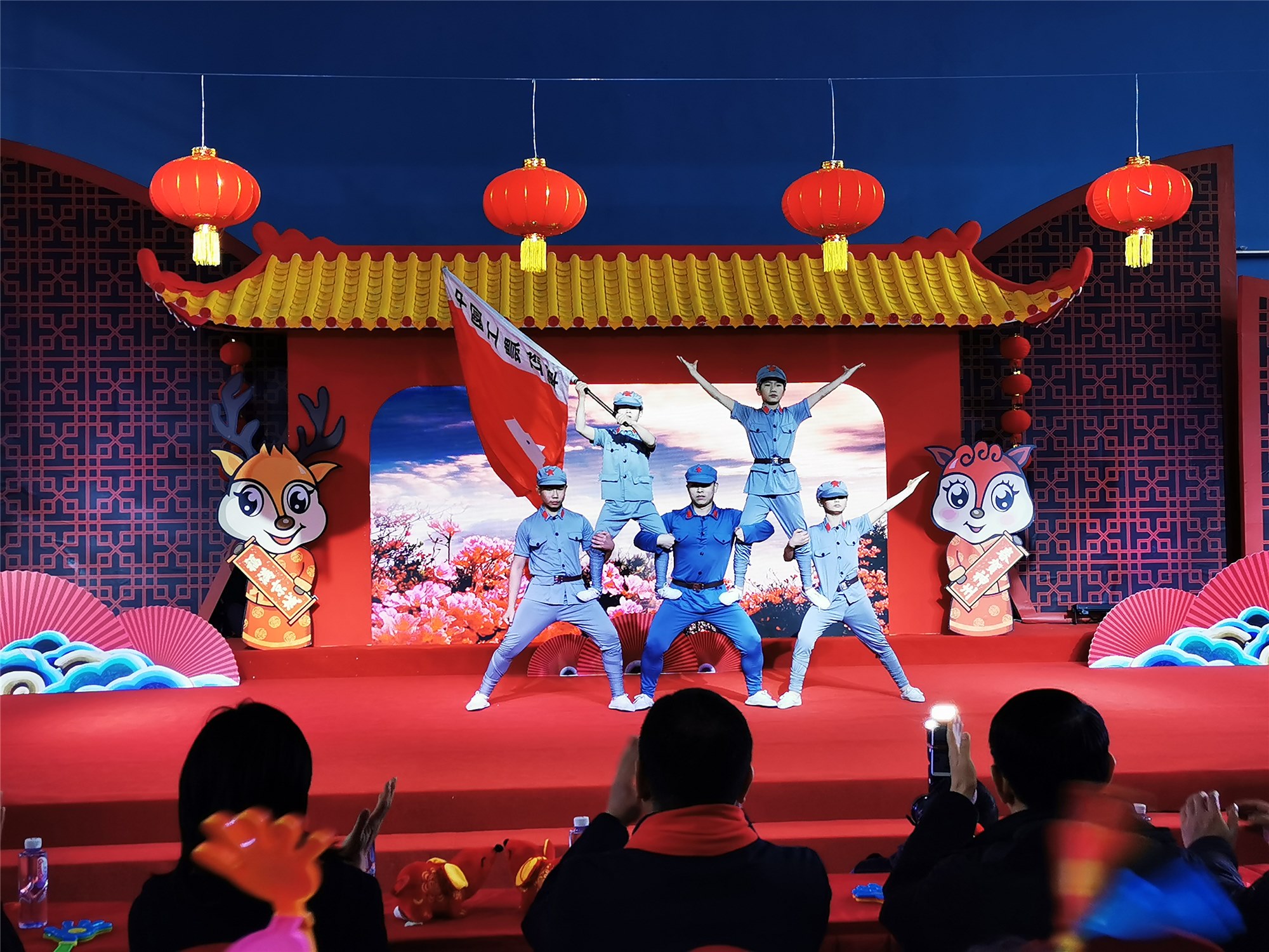 在《我們都是追夢人》的歌舞聲中,現場觀眾的注意力被吸引到了舞台中央, 隨後五位身手矯健的少年以一段《映山紅》雜技表演展現了當代青少年對紅軍精神的追憶敬仰和對新年的美好祝福,詩朗誦《給祖國拜年》聲情並茂,引起現場觀眾共鳴,無伴奏合唱《平安興豐》體現了新時代大興人民活力煥發、爭攀新高峰的豪情和氣概,傳統舞獅表演《招財納福廣運亨通》採用疊加「福祿壽喜財」五位吉祥仙星送福拜年的方式,將現場氣氛推向了高潮。