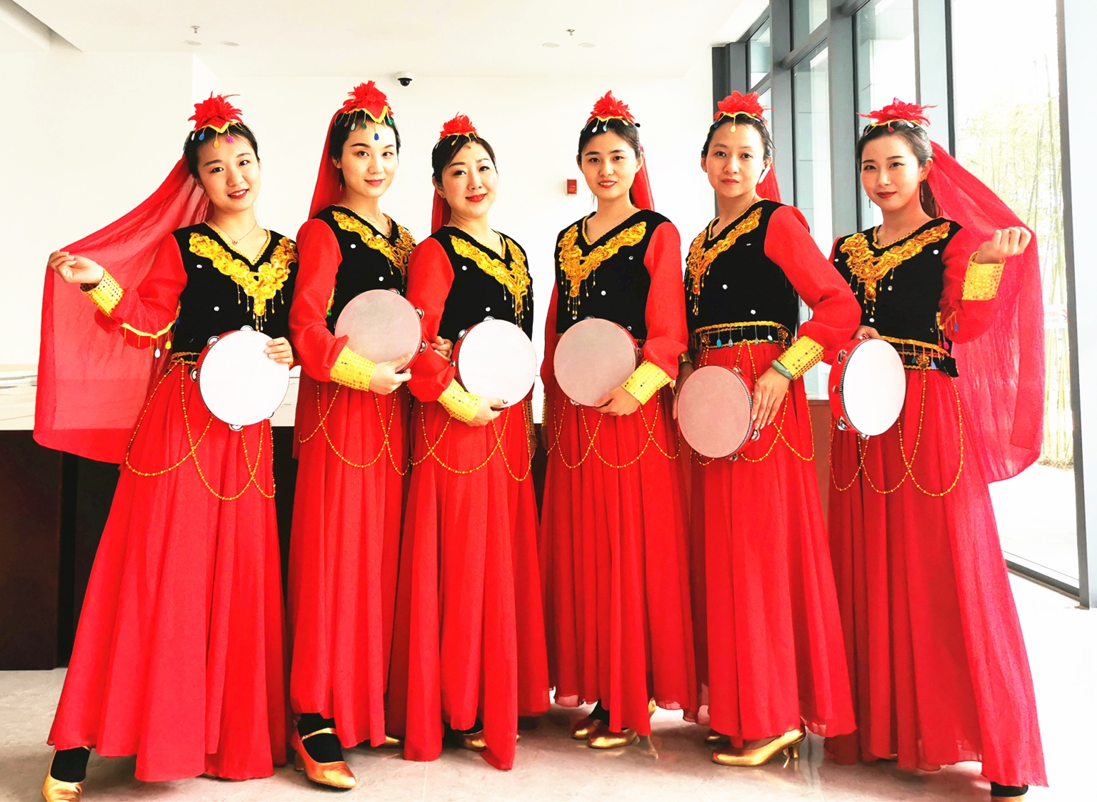六位身着新疆特色民族服裝的東航員工也為大興人民送來新年祝福