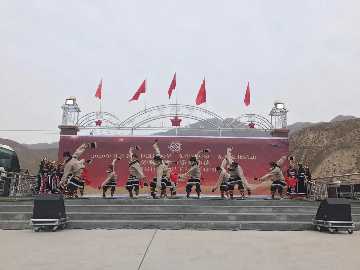 當天的演出彙集了甘肅省民族歌舞團的文藝骨幹及全省精選的非遺專案代表性傳承人,節目新穎、題材多樣、內容豐富。有明快動人的哈薩克族民歌、極具感召力的涼州賢孝、激昂大氣的龍頭琴彈唱等,為當地群眾送上了一道精彩紛呈的非遺大餐。