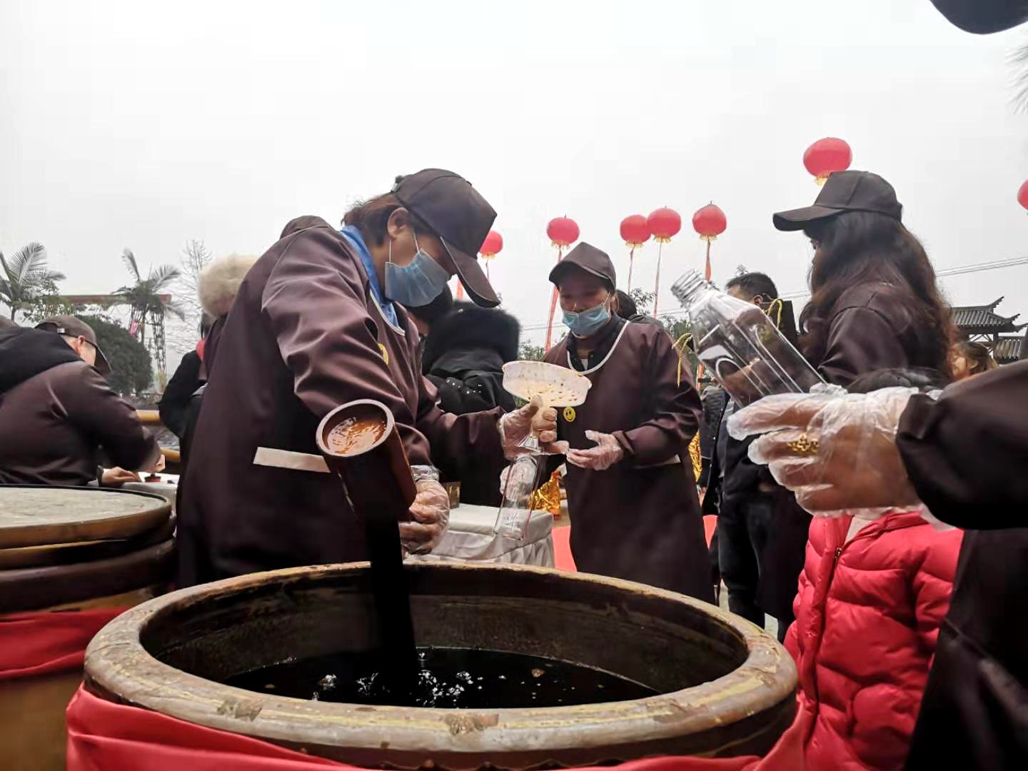 【香港商報網訊】「開壇了、開壇了,歡迎大家來購買……」1月19日,四川宜賓長寧縣雙河鎮筆架村的常香園醬油廠重新開門營業,震後生產出的第一批醬油於當日開壇售賣。