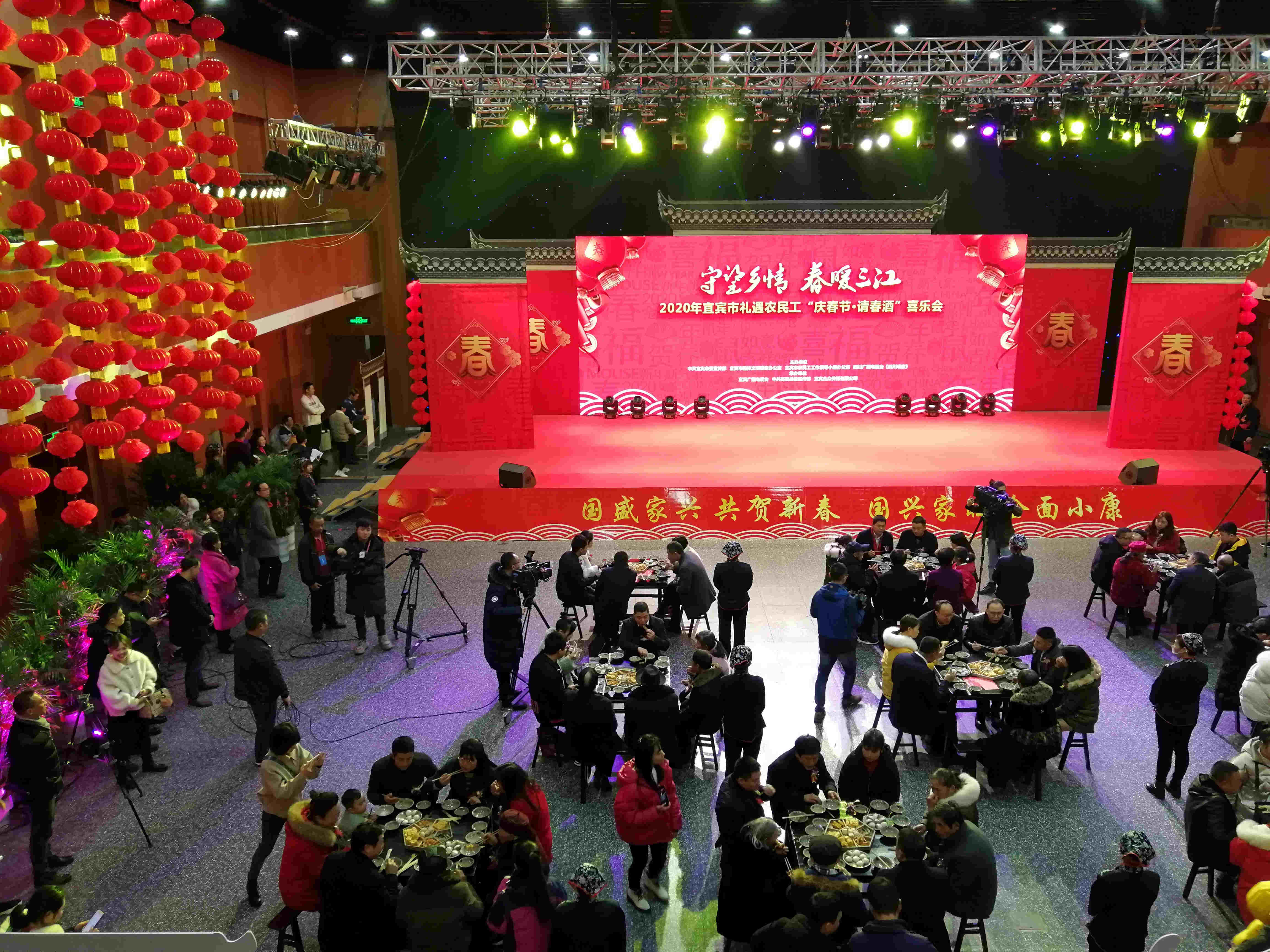 【香港商報網訊】大紅的燈籠,喜慶的福字,濃香的春酒,團聚的親情。1月17日,由宜賓市委宣傳部、宜賓市精神文明建設辦公室、宜賓市農民工工作領導小組辦公室主辦的2020年宜賓市禮遇農民工「慶春節·請春酒」喜樂會在宜賓市酒都劇場舉行。