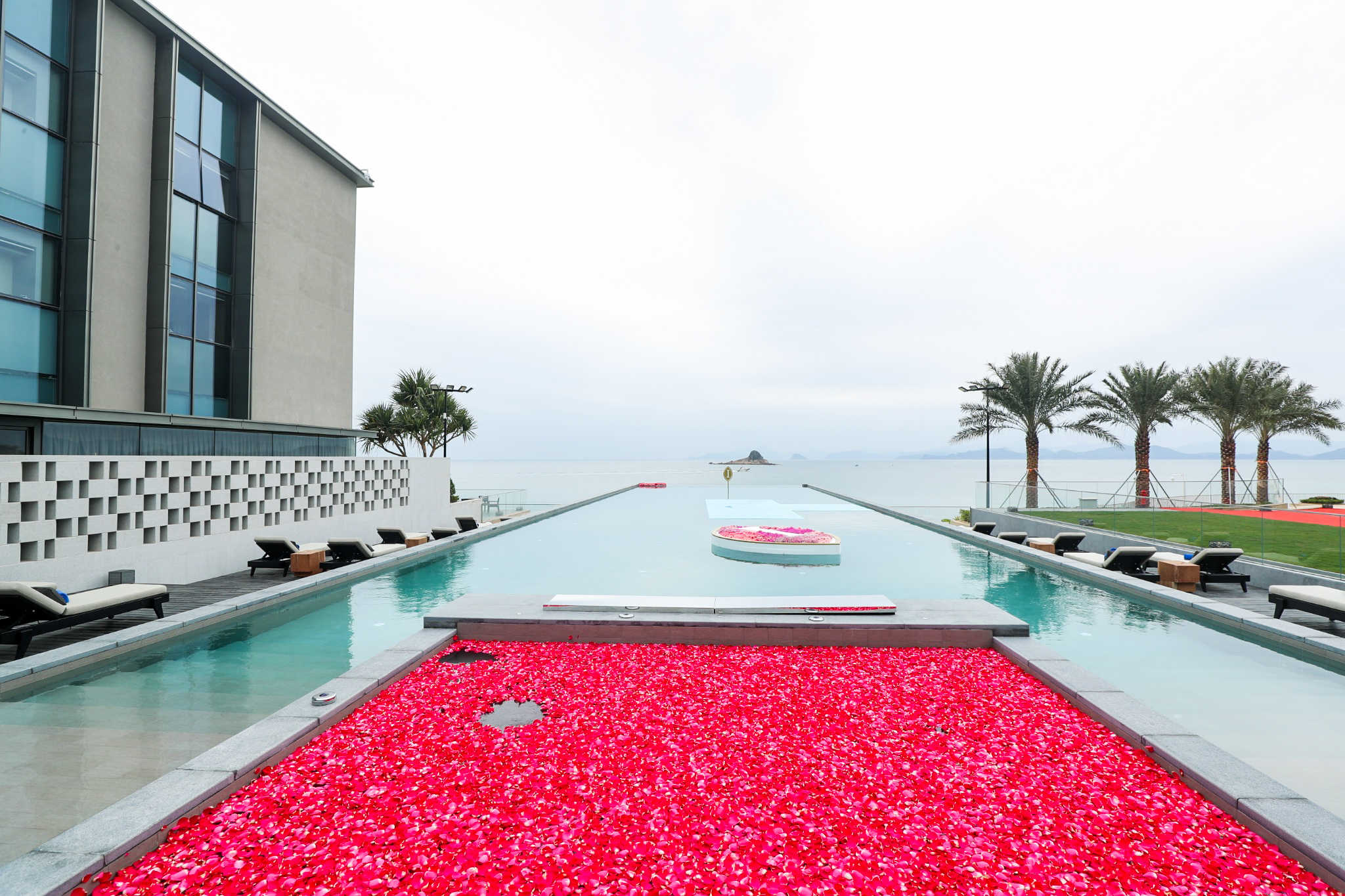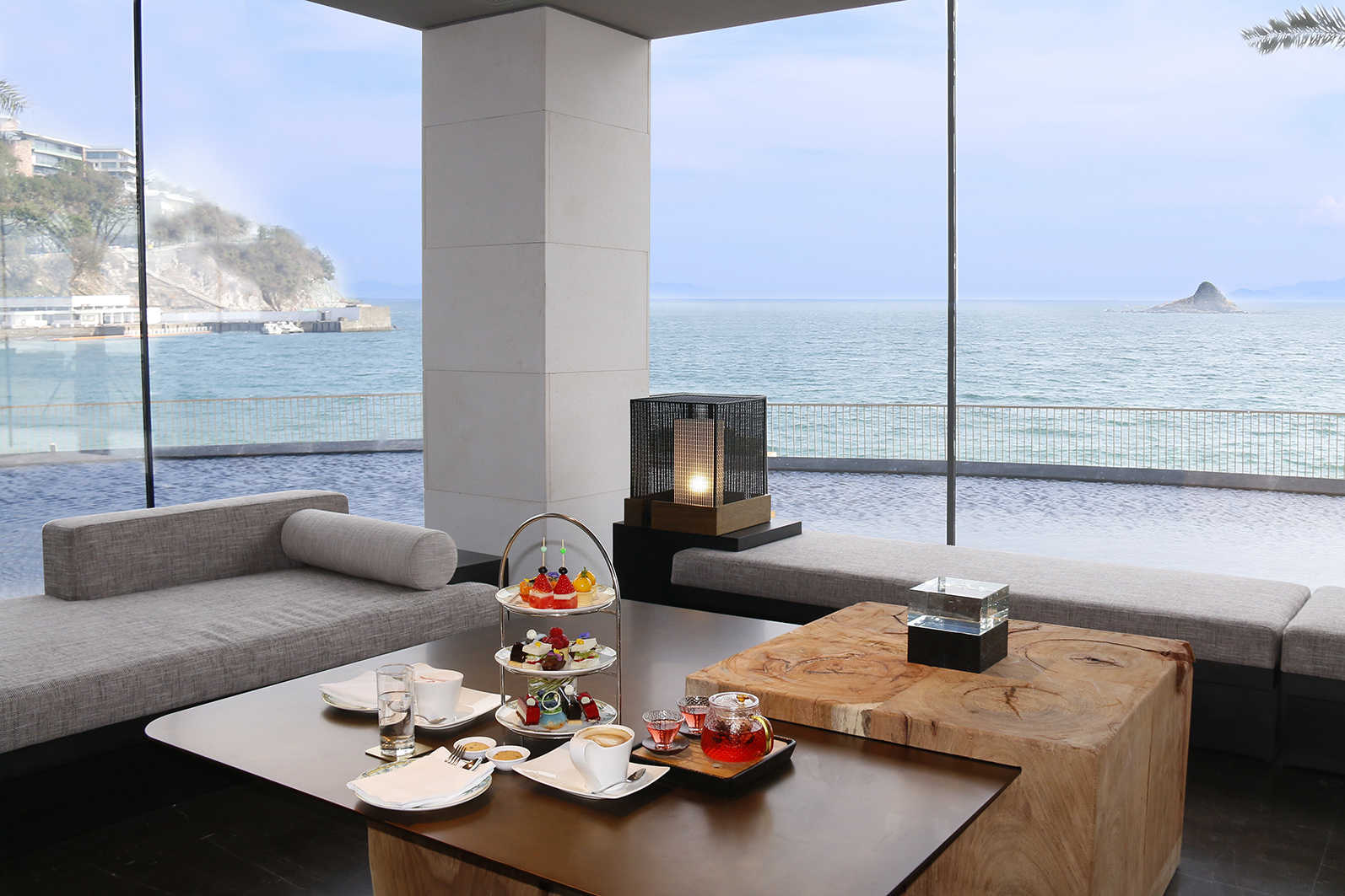 洲際行政俱樂部依主樓而建,秉持着「城市與自然對話,院邸與海洋交融」的理念,以水為本源,采精緻純凈的山石與水木構造出一座海濱水晶宮殿。大堂亦以憩水之城為主題,大面積運用透明落地裝飾,與海天麗景熱情相擁。