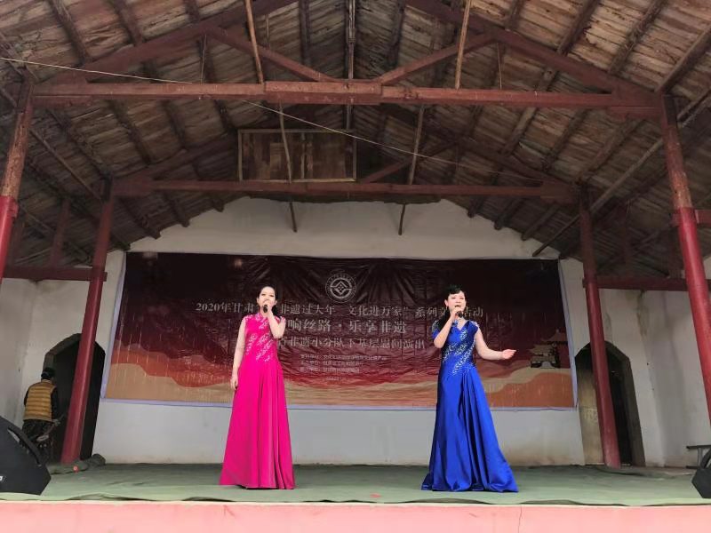 演出現場,藏族舞蹈《巴郎鼓與擺格爾》、瑪曲龍頭琴彈唱《格桑拉姆》、歌曲 《裕固情》、涼州賢孝《涼州賢孝唱葡萄》、舞蹈《徒手秧歌》、節子舞《驪靬古風》、哈薩克族民歌《我心中的玫瑰》、馬頭琴表演《都仁紮那·萬馬奔騰》、等精彩的節目“輪番上陣”,鄉親們紛紛拿起手中的手機,記錄下這美好的一刻。