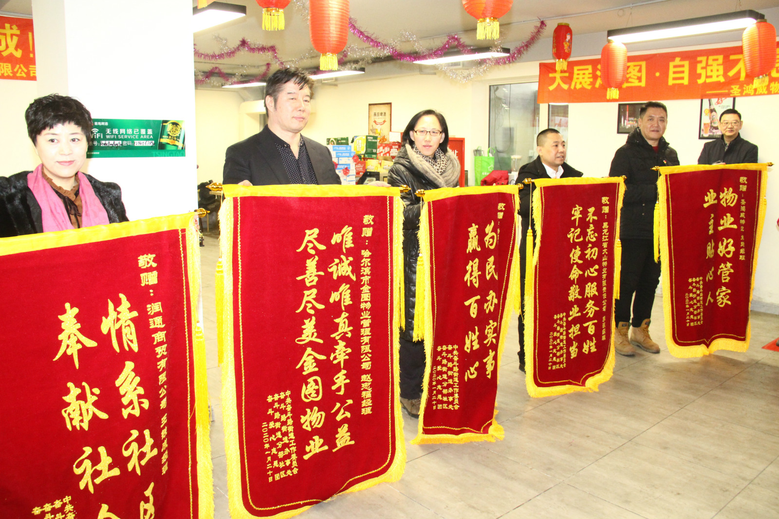 哈爾濱市委宣傳部對外宣傳處處長付文茂(左三)等領導為愛心單位及企業頒發錦旗