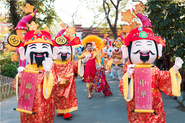 景區將特別奉獻全天70場余場特色演出,給遊客帶來頂級視聽盛宴。獅王迎賓鼓、非遺小木偶、非遺皮影戲、快樂小岩侃等節目從早演到晚,密集排期,歡笑不斷。更有獨具特色的少數民族村寨過大年,27個民族,56種風情,少數民族兄弟姐妹身着節日盛裝,各族祝福語此起彼伏,載歌載舞,歡慶新年。
