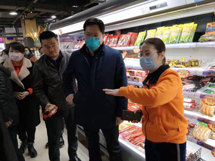 會議結束後,李餘糧局長馬上帶領相關人員檢查了株百廬山店,針對該店個別營業人員未戴口罩、紅外測溫儀未在入口處使用,提出了整改意見,對店內物資準備充足、價格平穩作了肯定。